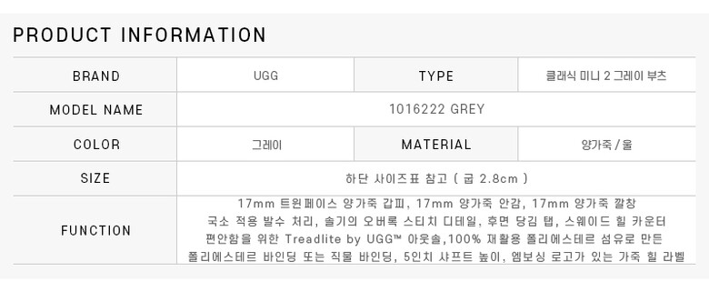 어그 UGG 클래식 미니 그레이 1016222 GREY 여성 부츠