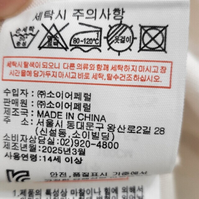 | 1. 제품 소재 (섬유의 조성 또는 혼용률을 백분율로 표시, 기능성인 경우 성적서 또는 허가서) | 상품상세참조 |