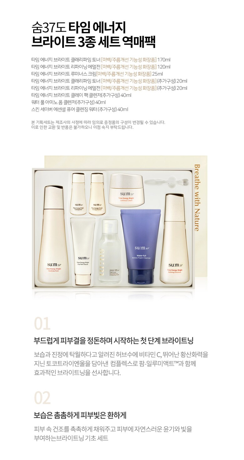 [숨37도] 타임 에너지 브라이트 토너 에멀전 크림 3종 기획세트 역매팩