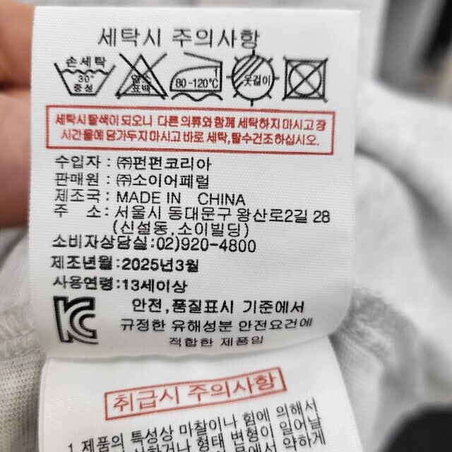 | 1. 제품 소재 (섬유의 조성 또는 혼용률을 백분율로 표시, 기능성인 경우 성적서 또는 허가서) | 상품상세참조 |