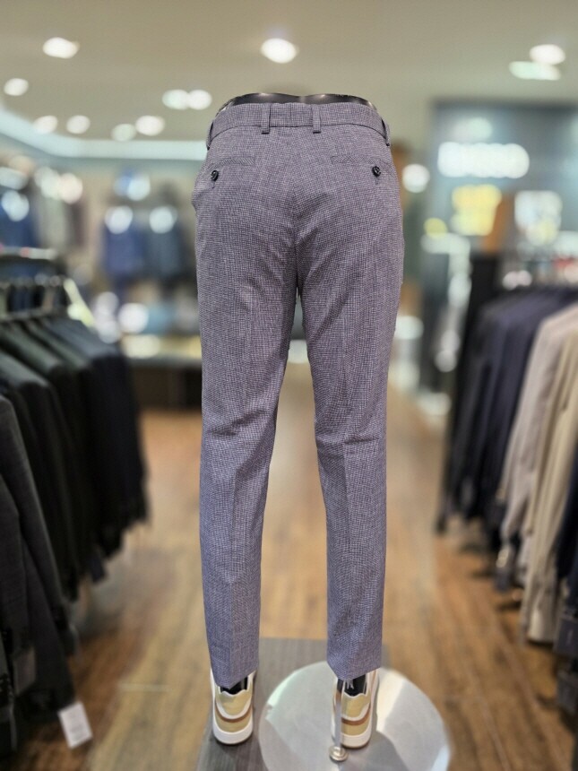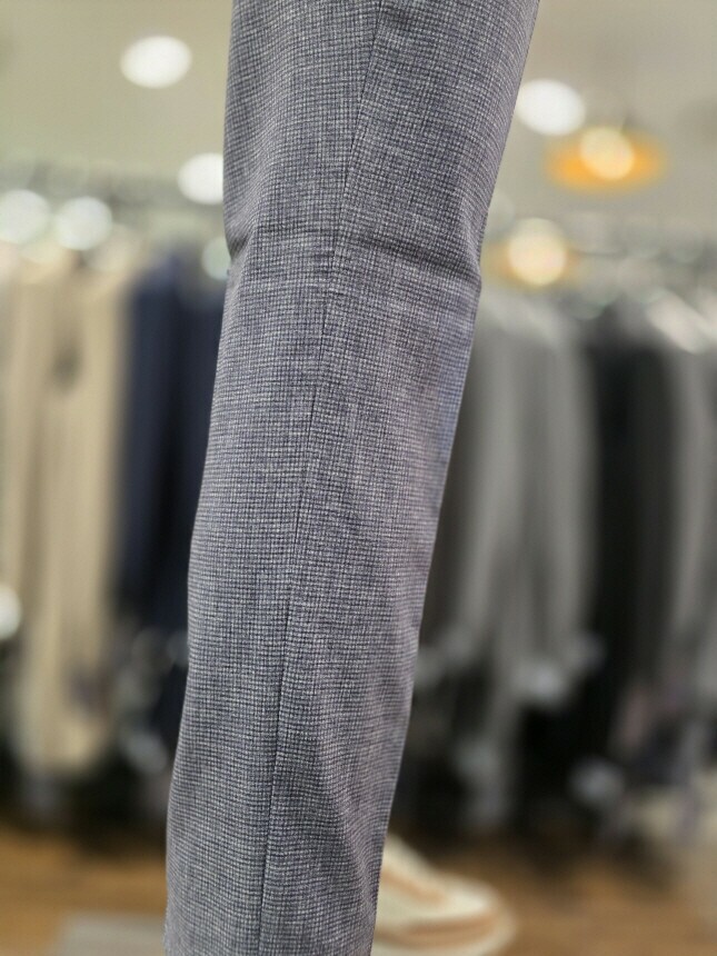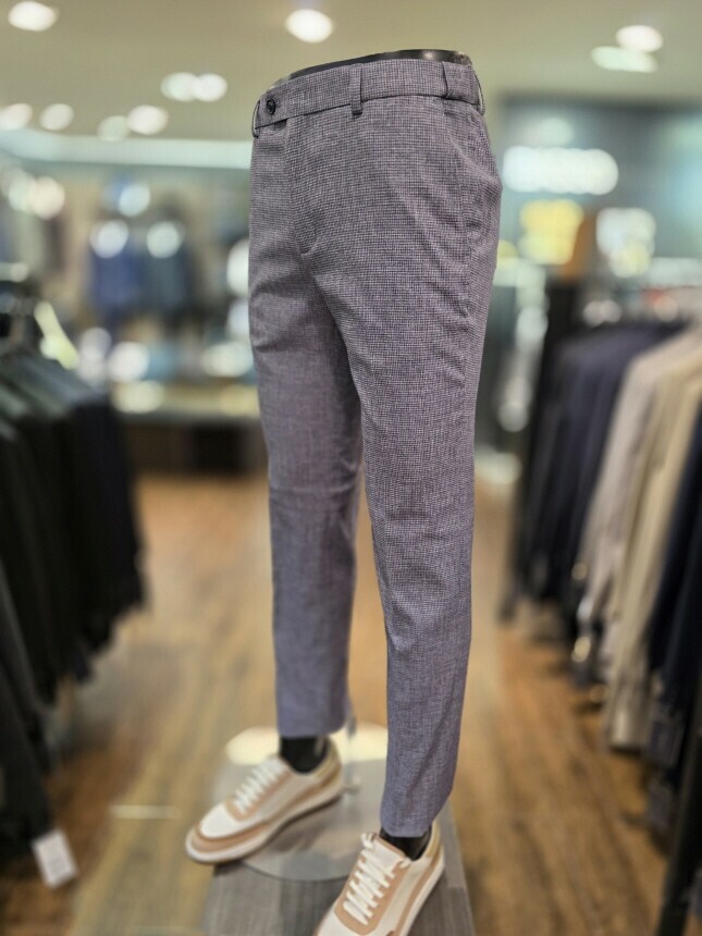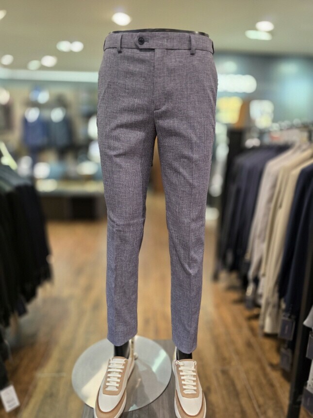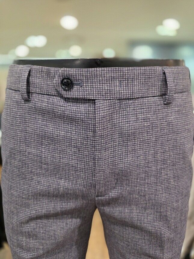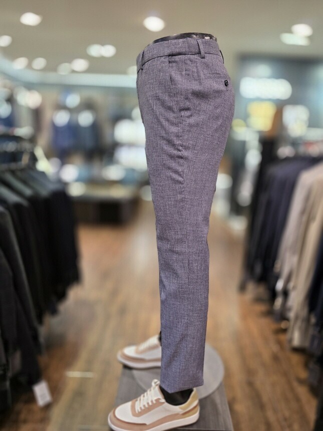 [바쏘옴므] Z2PK73A 25년S/S 네이비 체크패턴 스트레치 히든사이드밴딩 캐쥬얼 팬츠