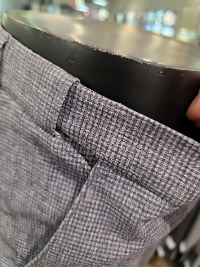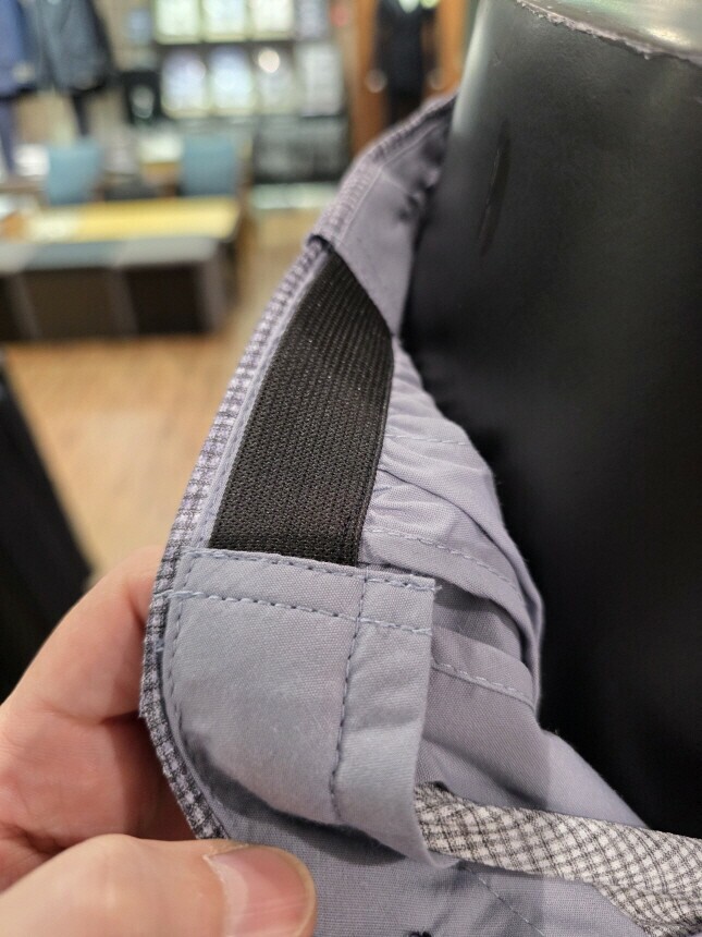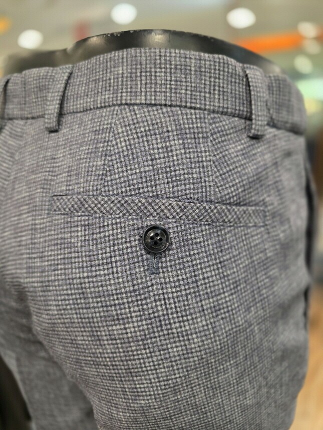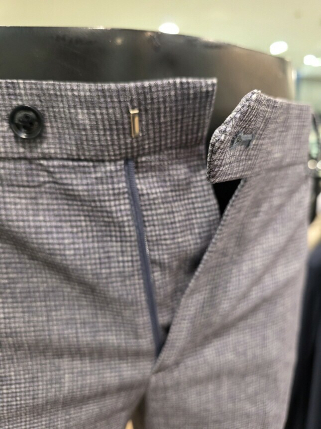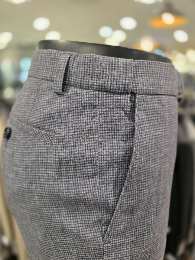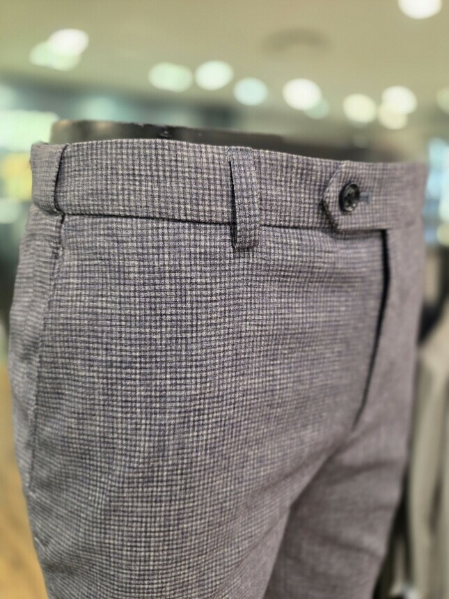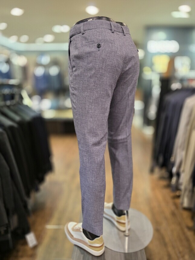 [바쏘옴므] Z2PK73A 25년S/S 네이비 체크패턴 스트레치 히든사이드밴딩 캐쥬얼 팬츠