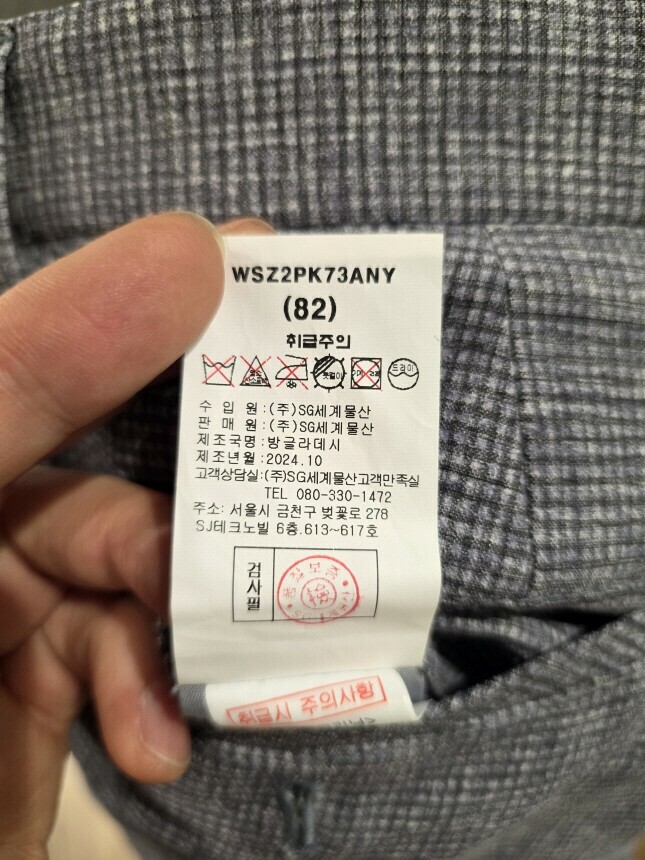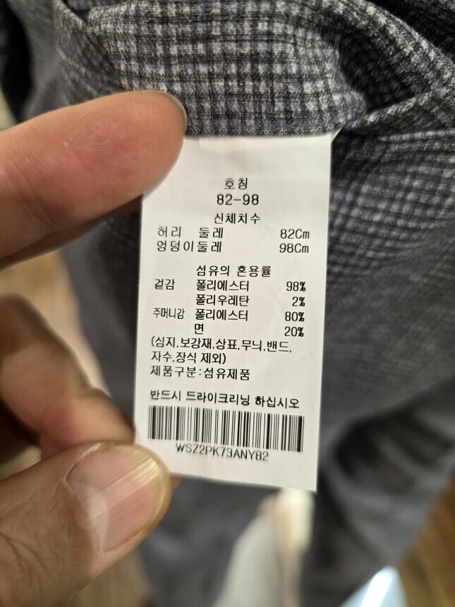 겉감 : 폴리에스터 98% , 폴리우레탄 2%