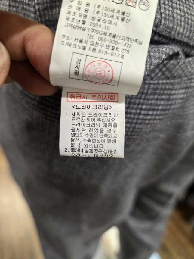 | 6. 세탁방법 및 취급시 주의사항 | 드라이크리닝 |