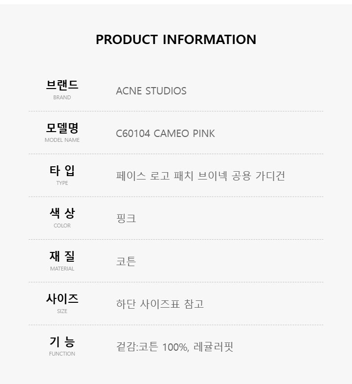 | 1. 제품 소재 (섬유의 조성 또는 혼용률을 백분율로 표시, 기능성인 경우 성적서 또는 허가서) | 상세페이지 참조 |
