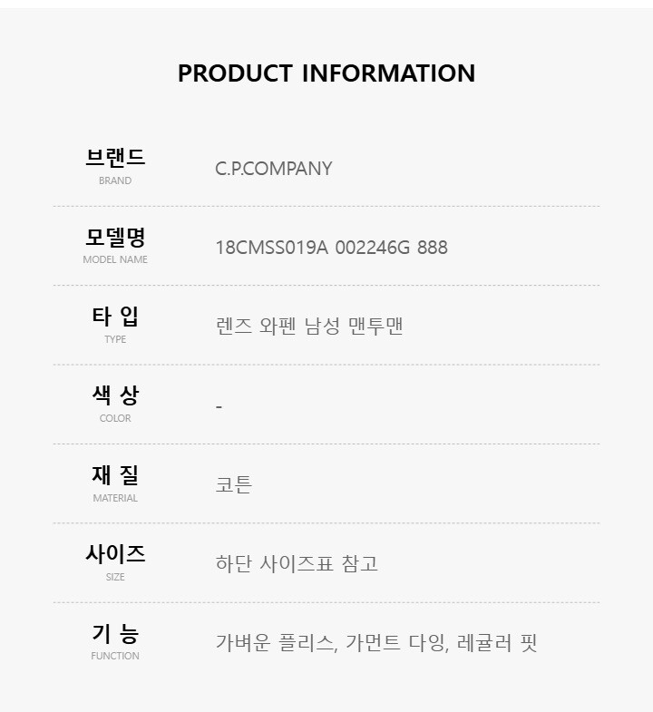[명품] CP컴퍼니 18CMSS019A 002246G 888 렌즈 와펜 남성 맨투맨