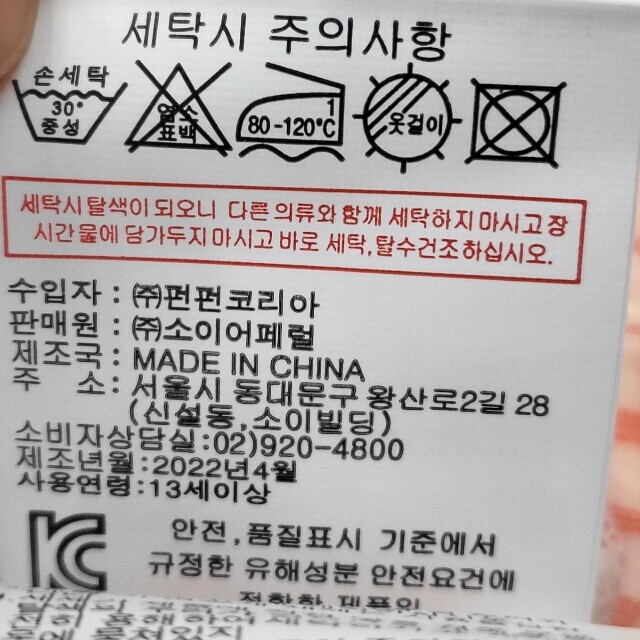 | 1. 제품 소재 (섬유의 조성 또는 혼용률을 백분율로 표시, 기능성인 경우 성적서 또는 허가서) | 상품상세참조 |