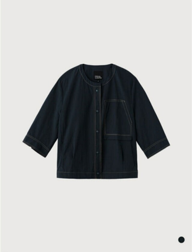 B가볍게 걸칠수 있는 라운드 넥의 홑겹 자켓입니다