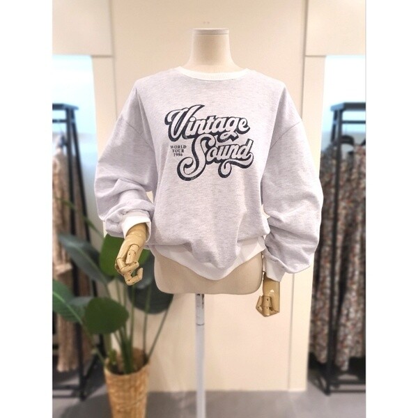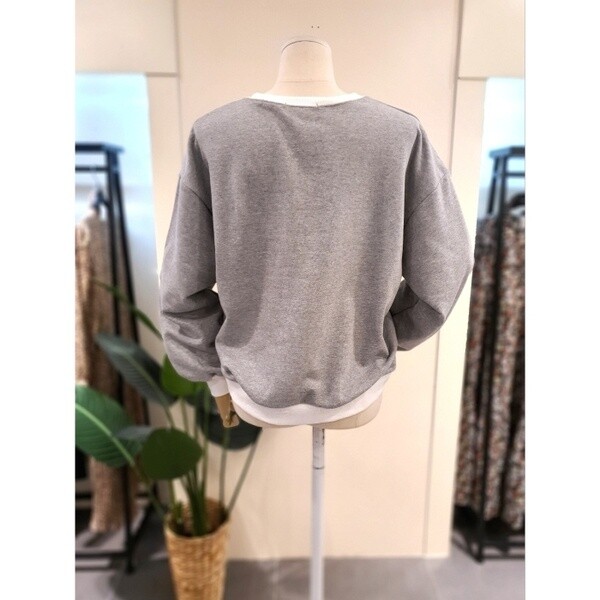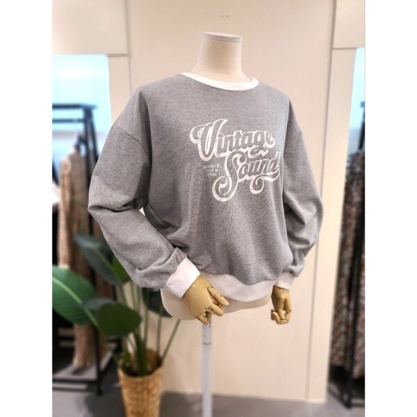 KETSP302GR_사운드 배색 맨투맨 티셔츠 그레이