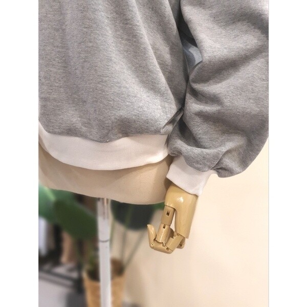 넥라인과 밑단 소매 레이어드를 한 듯한 배색 포인트로 더욱 멋스럽고 귀여운 분위기를 가진 상품입니다.