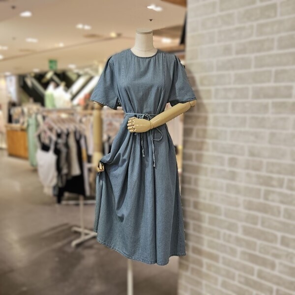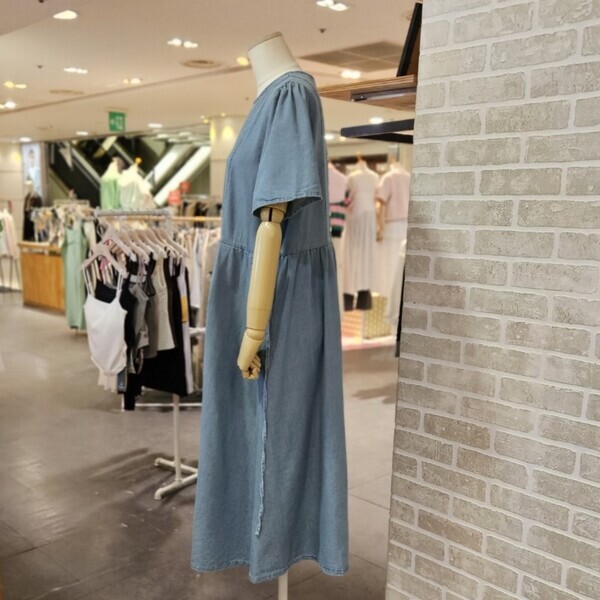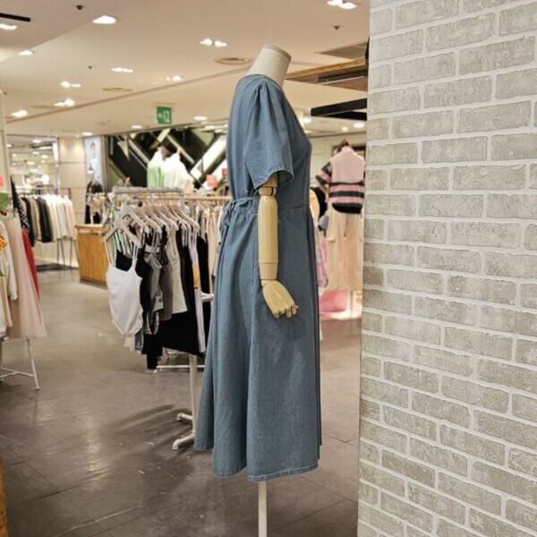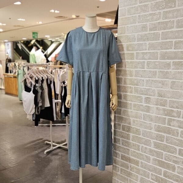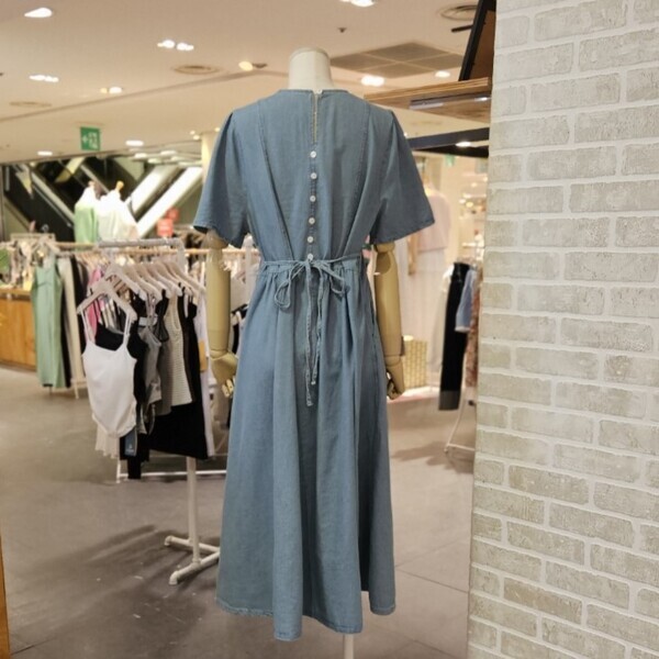 LC31E5DO503X_뒤 버튼 반팔 데님 원피스