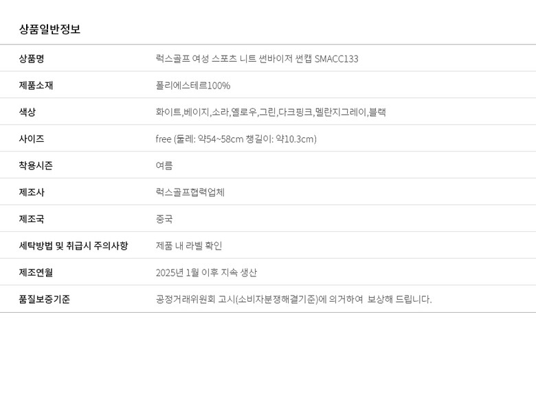 여성 스포츠 니트 썬바이저 썬캡 모자 L170354