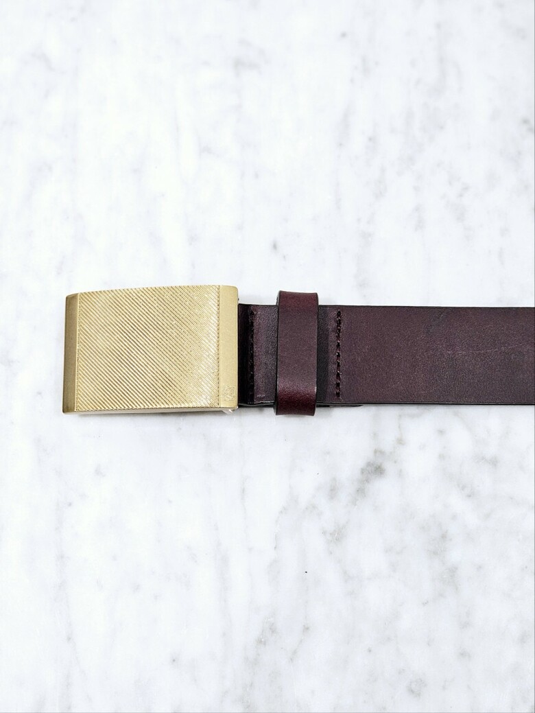 메탈에 빗살무늬의 콤비로 고급스러움이 더 해진 남성 수동벨트입니다.