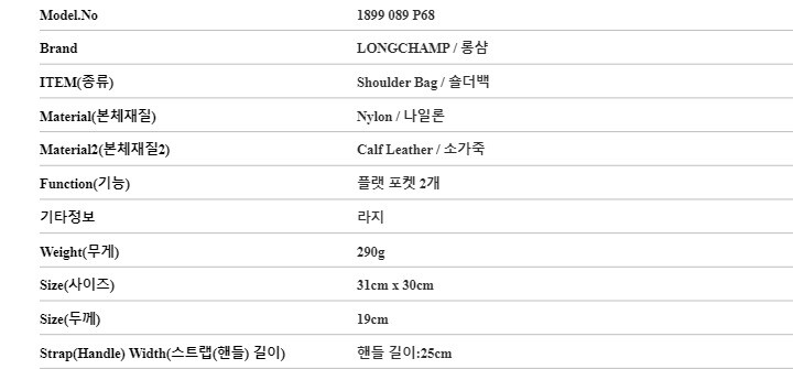 | 5. 제조사 | 롱샴/MACHO-병행수입 |