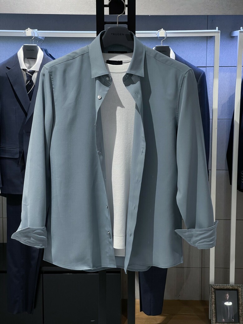 트루젠 민트 히든카라 기본핏 캐주얼 남자 긴팔 셔츠 2322RC030042