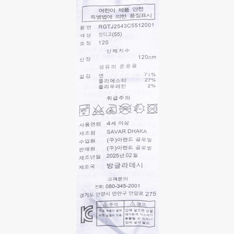 | 1. 제품 소재 (섬유의 조성 또는 혼용률을 백분율로 표시, 기능성인 경우 성적서 또는 허가서) | 상품상세참조 |