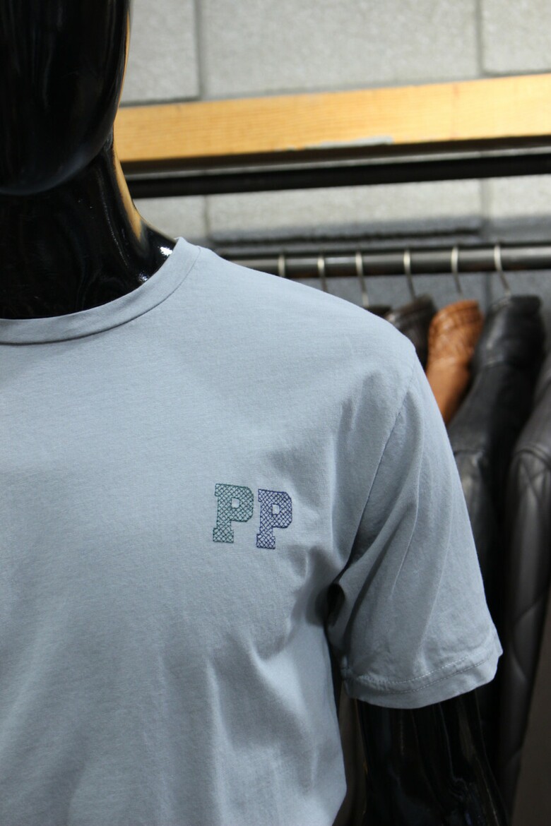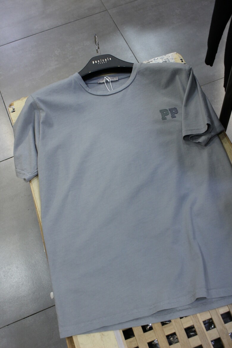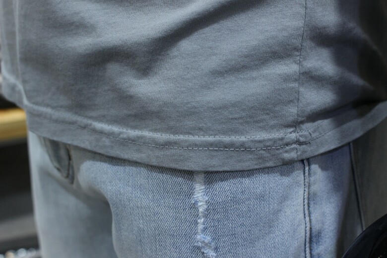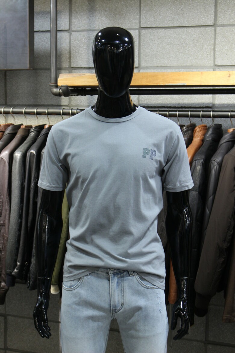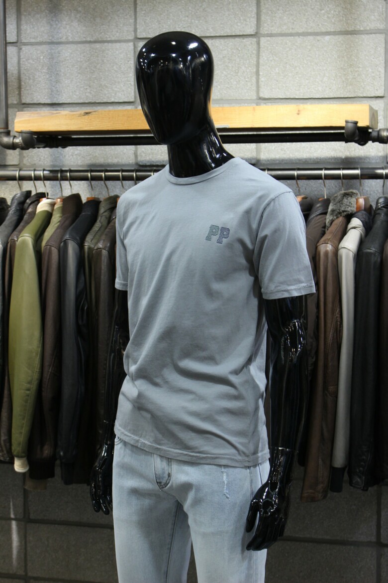 이태리직수입 다이드코튼 스티치로고 슬림핏그레이반팔티 f-qtee02gr