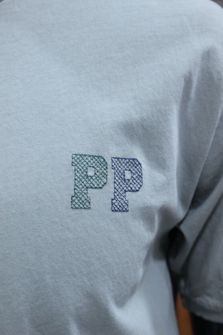 기본라운드넥반팔디자인에 스티치로고로 포인트를 주었습니다