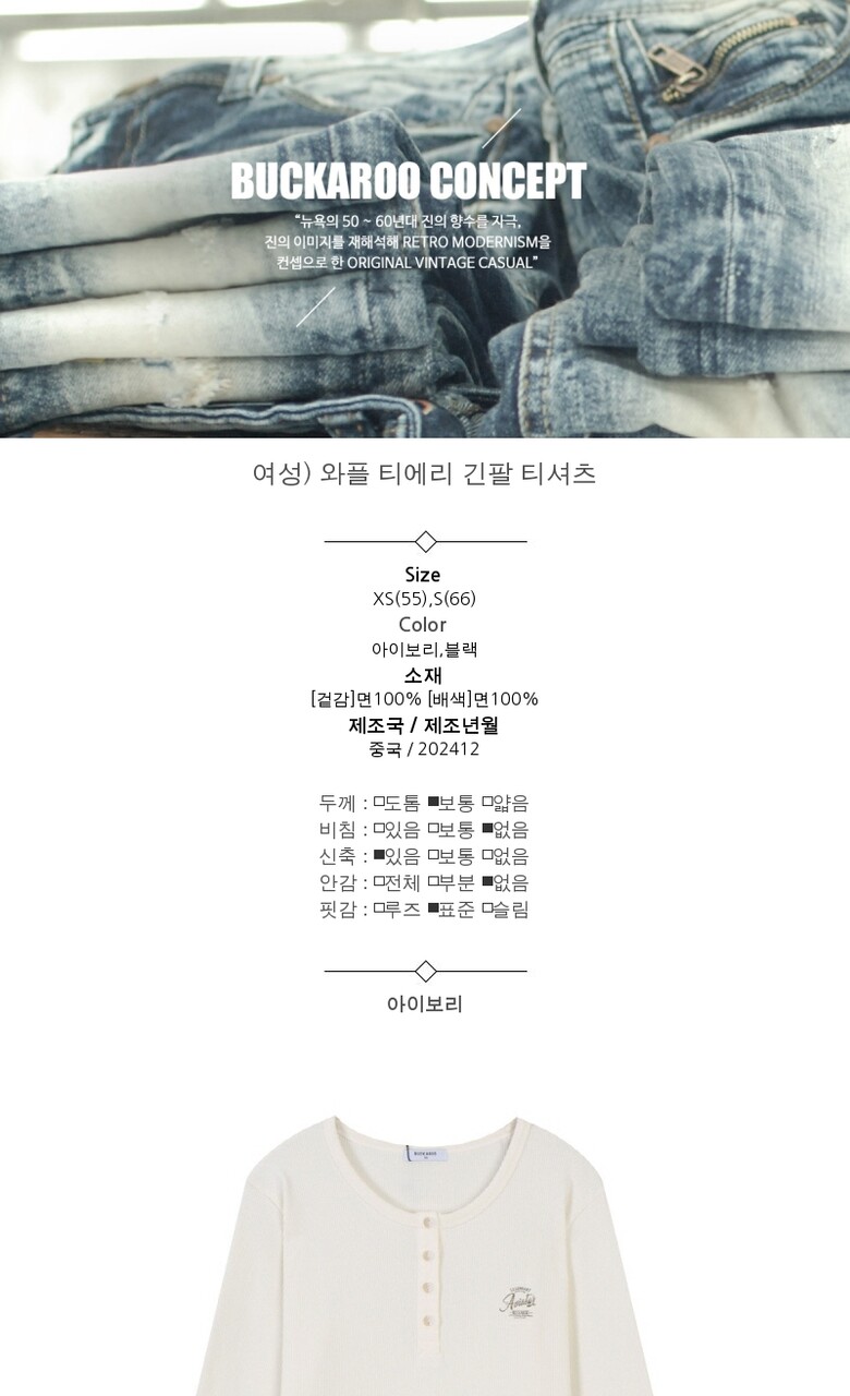 [버커루] 여성) 와플 티에리 긴팔 티셔츠 (B251TS504P)