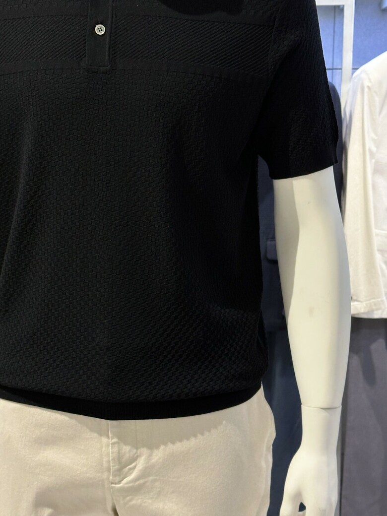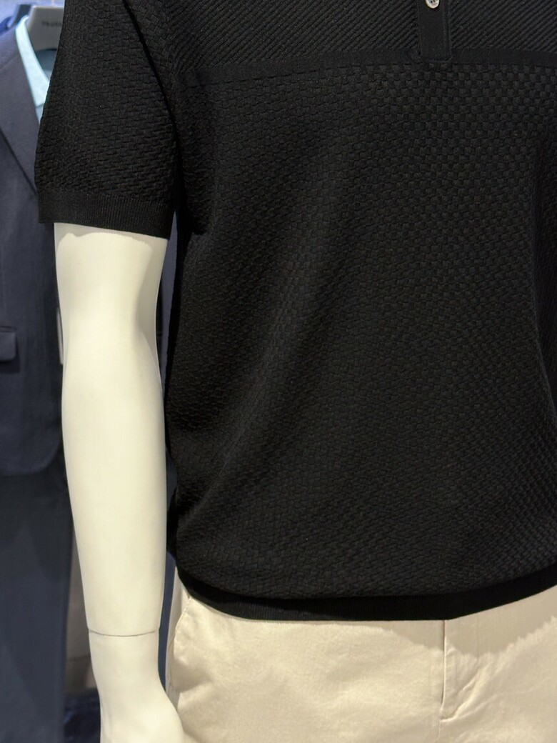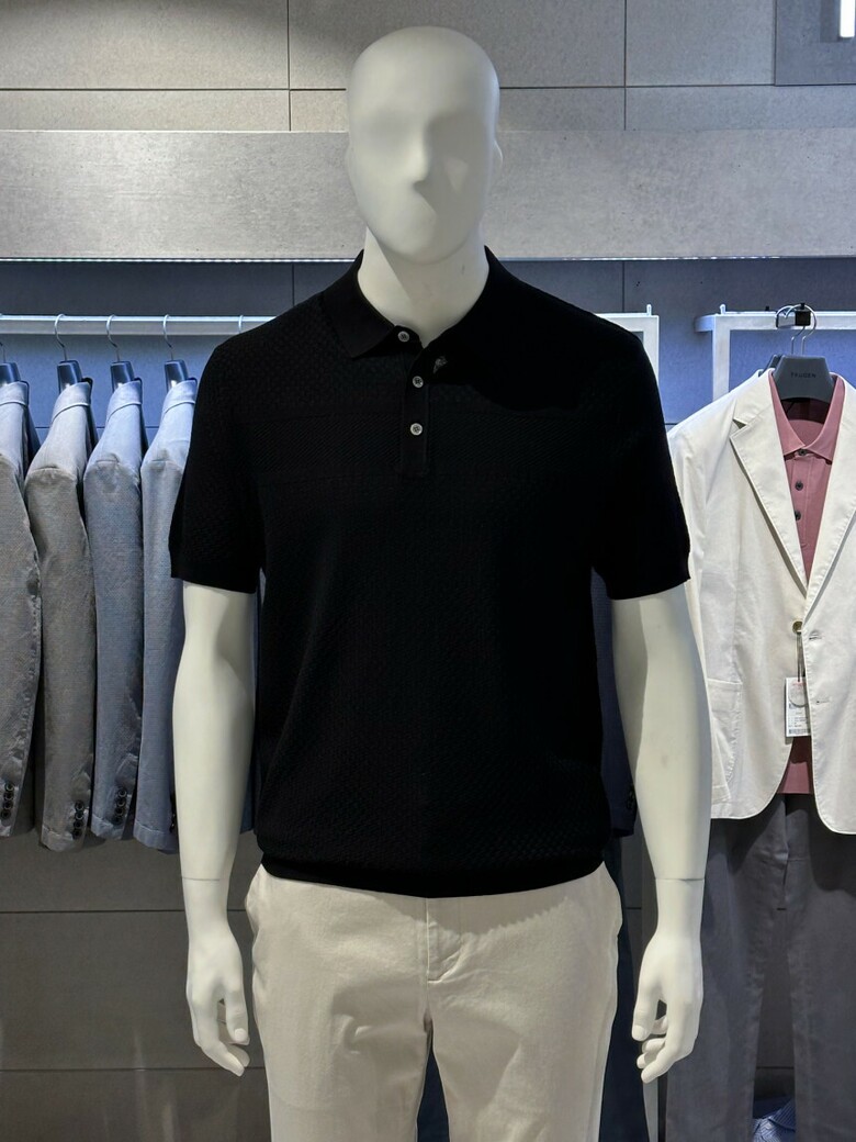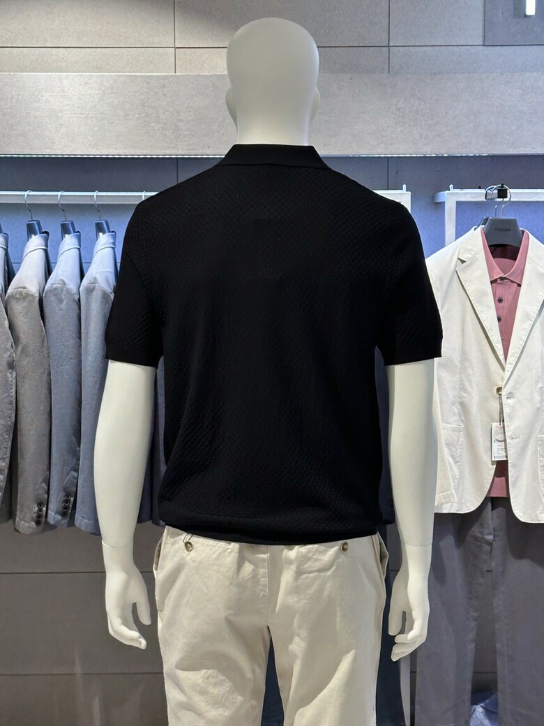 트루젠 블랙 리오셀 스퀘어블록패턴 카라 반팔니트 2533SP041054