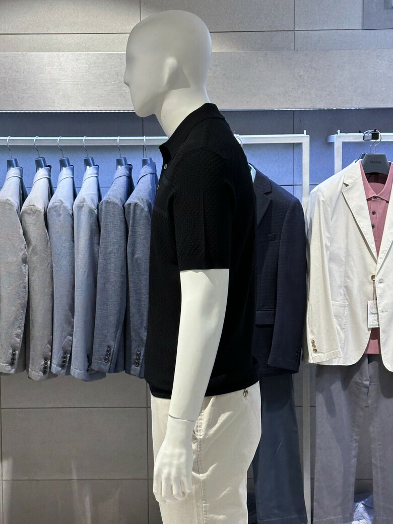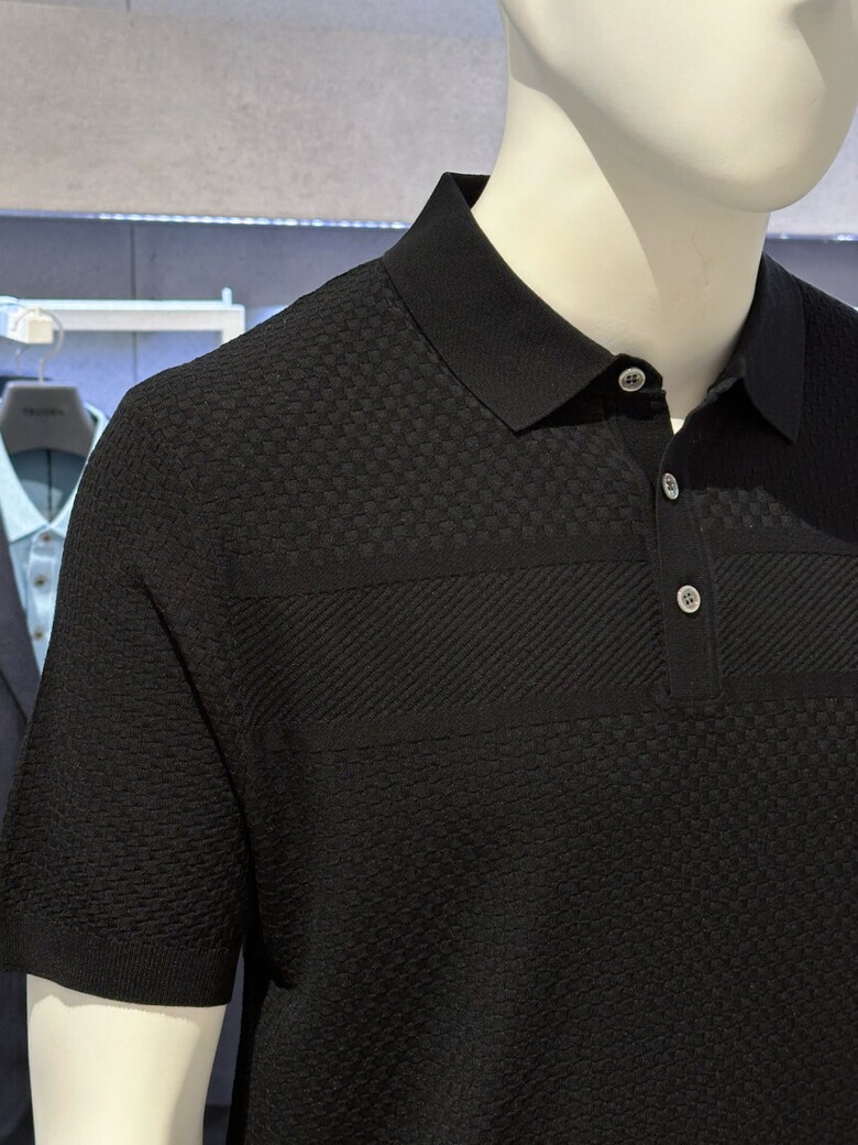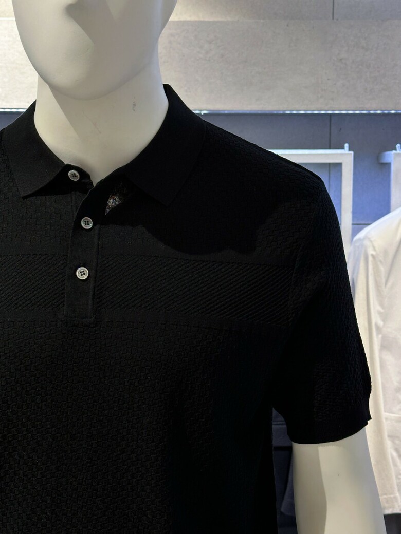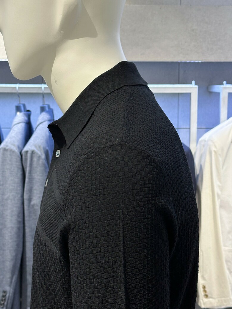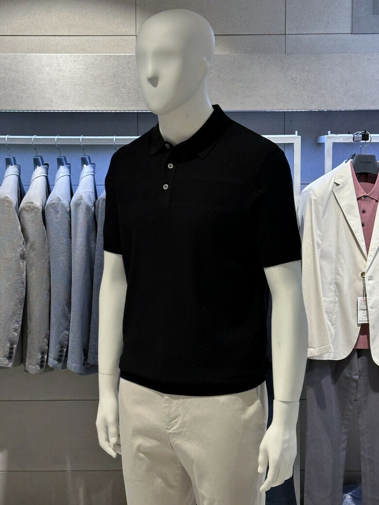 트루젠 블랙 리오셀 스퀘어블록패턴 카라 반팔니트 2533SP041054