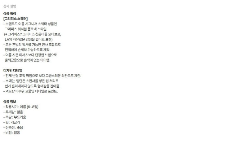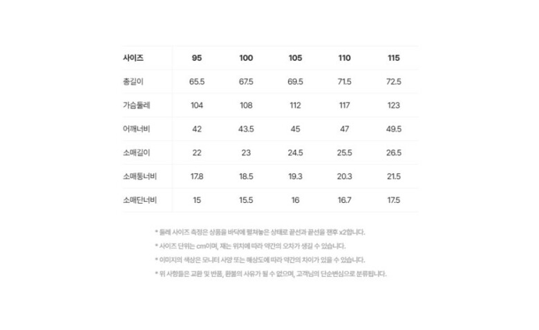 | 1. 제품 소재 (섬유의 조성 또는 혼용률을 백분율로 표시, 기능성인 경우 성적서 또는 허가서) | 상품상세참조 |