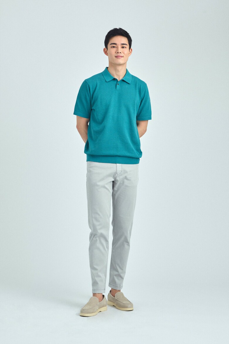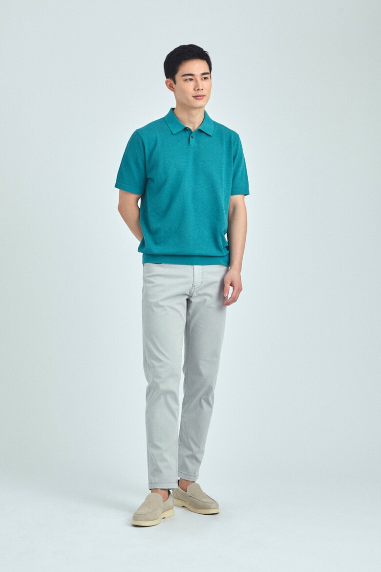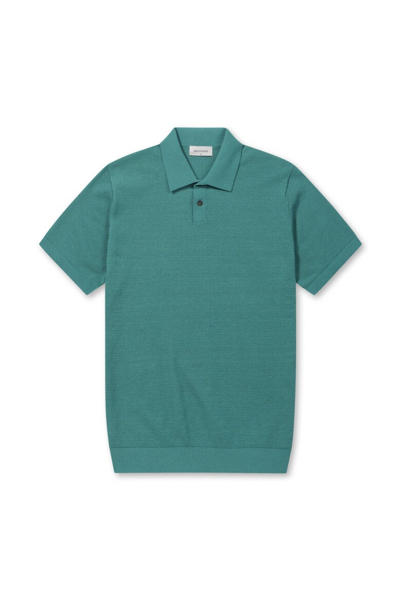 브렌우드 [시리즈:그리피스] 블루그린 워셔블 코튼혼방 폴로넥 남자 반팔티셔츠 BRWAM25411BGX