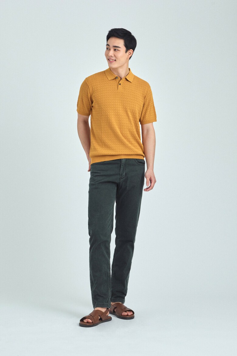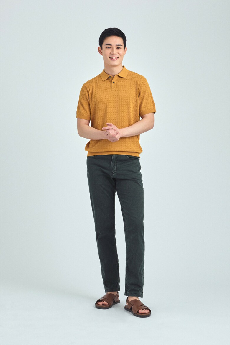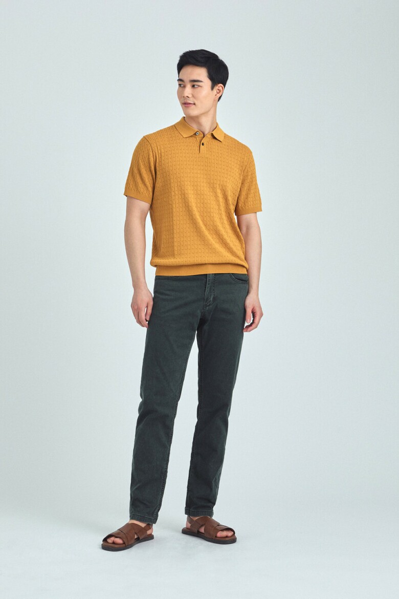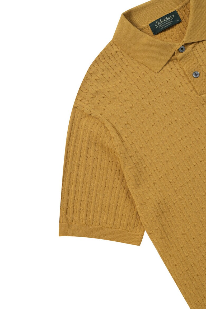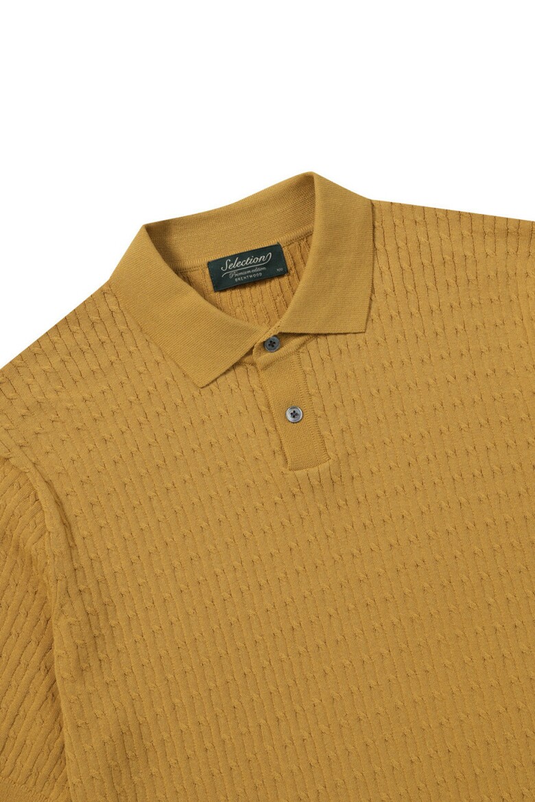 브렌우드 [시리즈:셀렉션] 옐로우 케이블짜임 워셔블 폴로넥 남자 반팔 니트티셔츠 BRWAM25811YEX