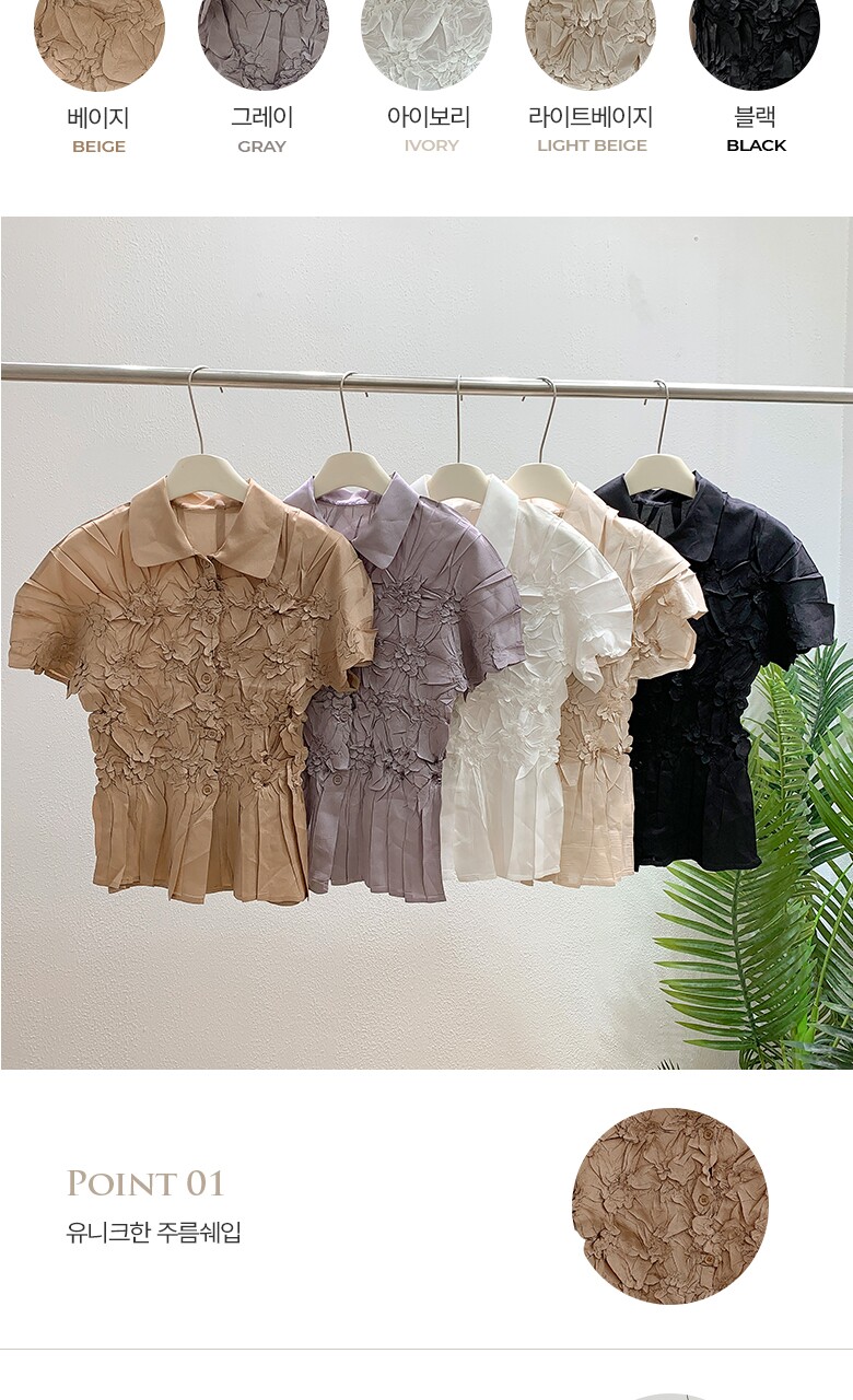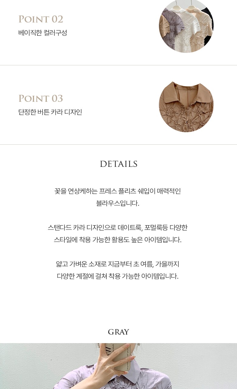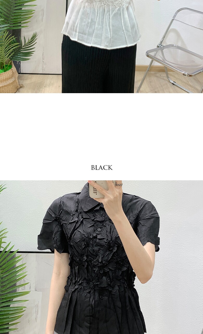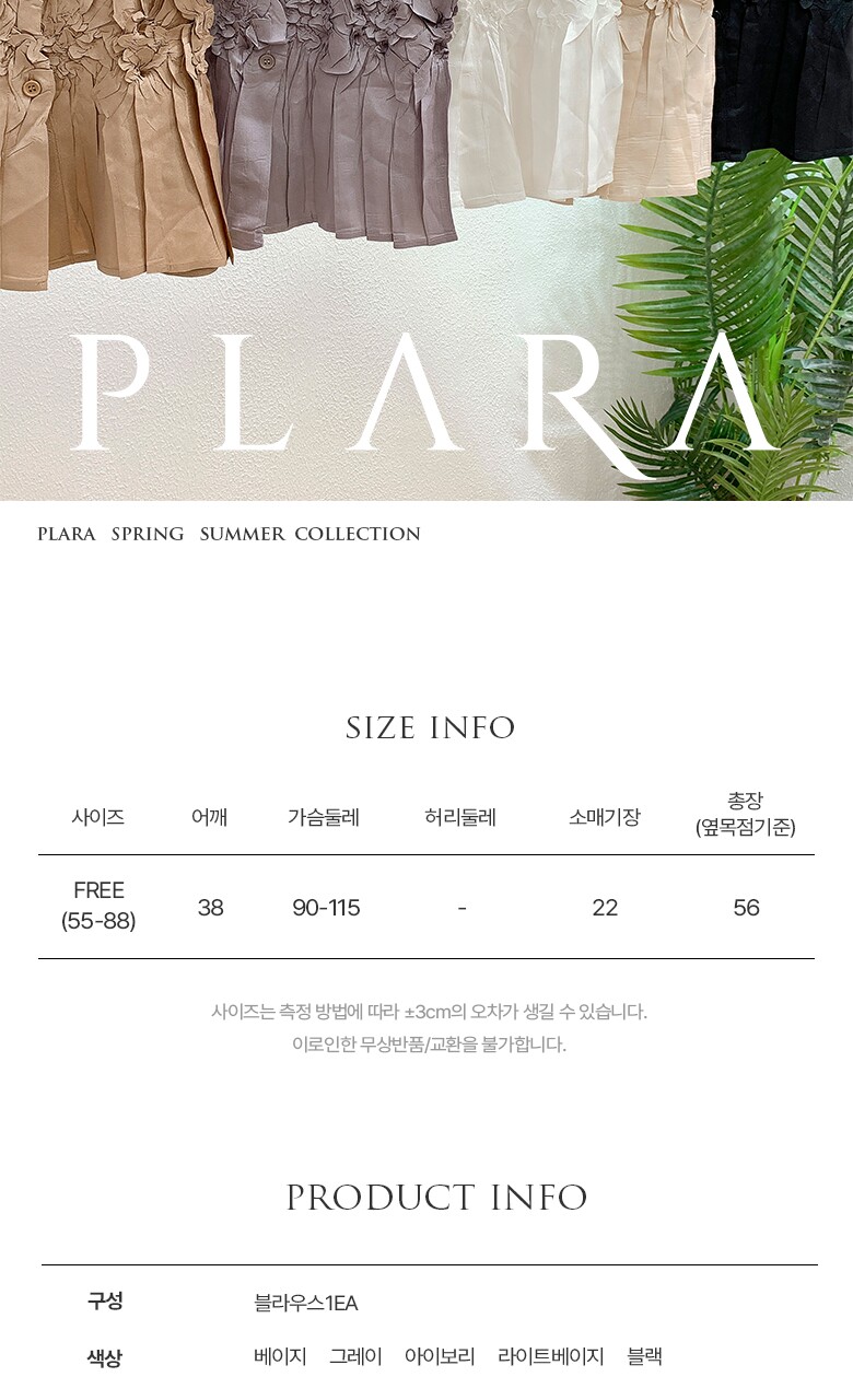플라라 (88까지)플리츠프레스플라워블라우스
