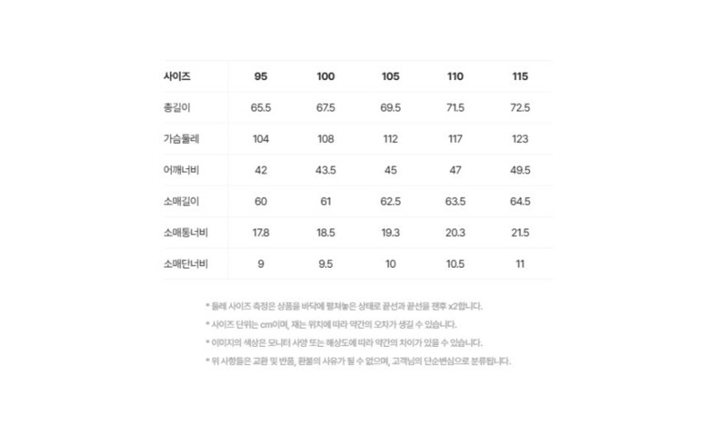 | 6. 세탁방법 및 취급시 주의사항 | 상품상세참조 |