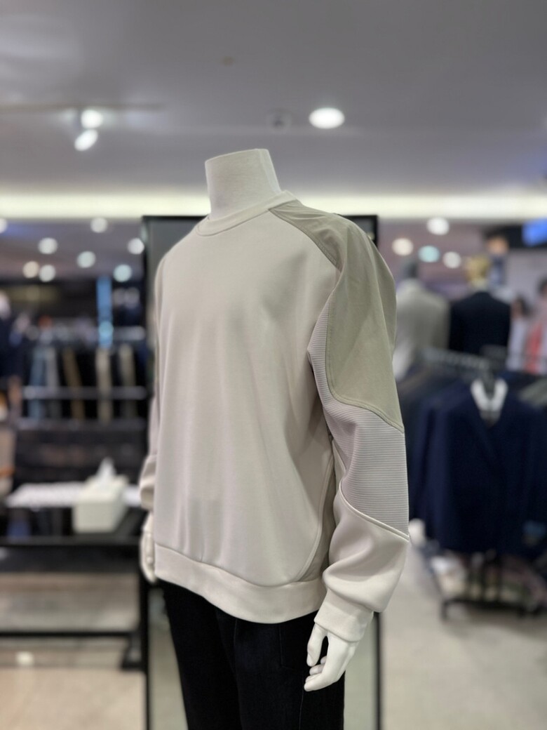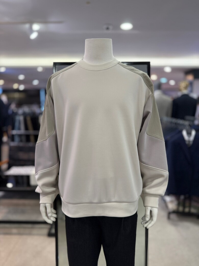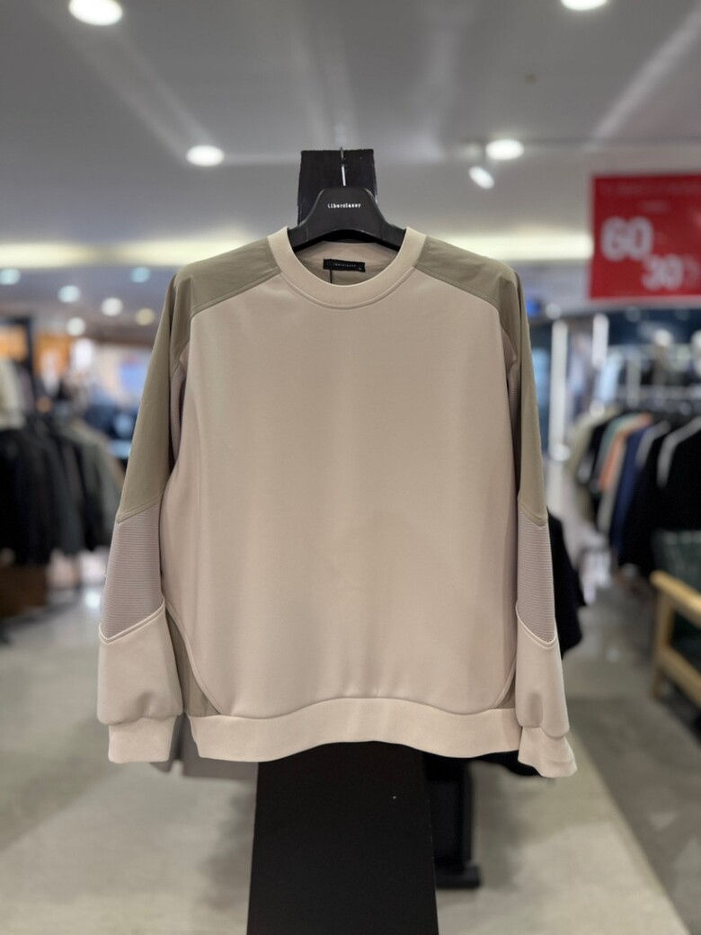 리버클래시 베이지 텍스처 배색 맨투맨 LLS41505