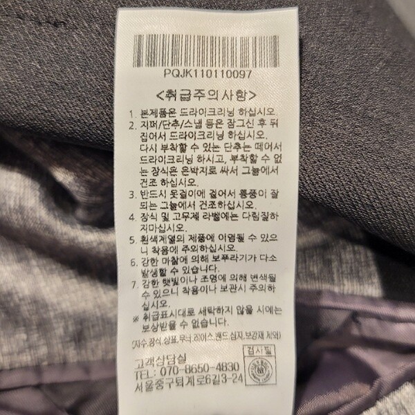 세탁방법 및 취급시 주의사항 : 본 상품 케어라벨 참조