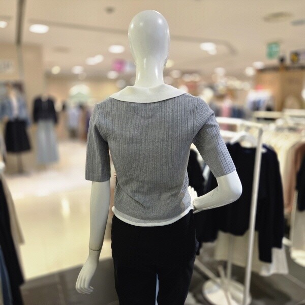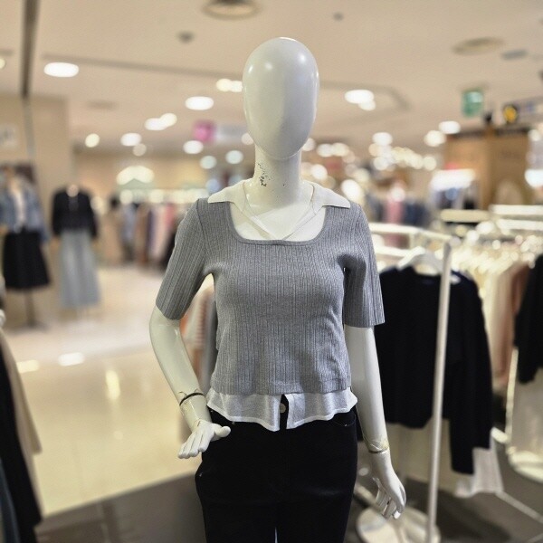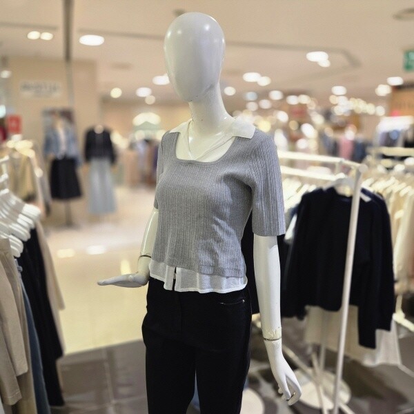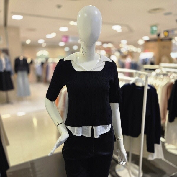 레이어드로 이루어진 반팔 여름용 니트로 멋스러우면서 시원하게 연출하기 좋은 아이템입니다.