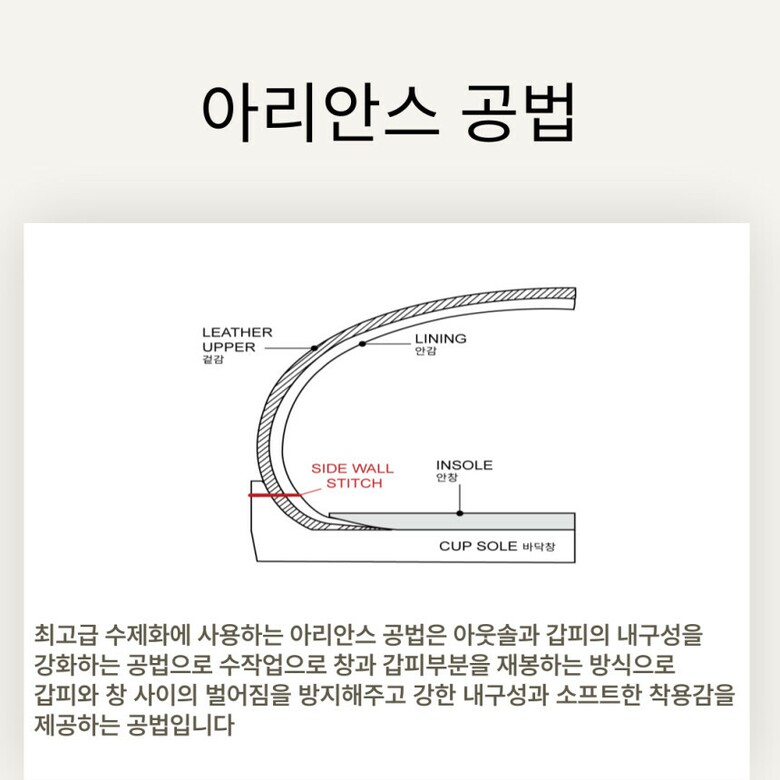 또한 아리안스 공법으로 제작하여 창과 갑피를 단단하게 잡아주며