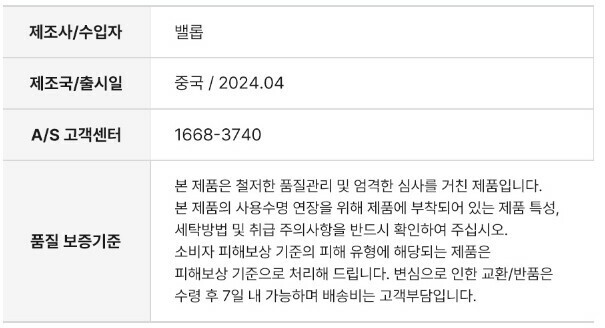 | 8. 품질보증기준 | 상품상세참조 |
