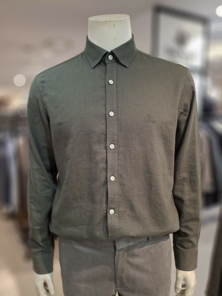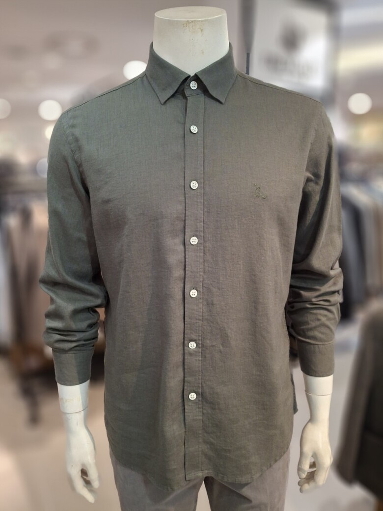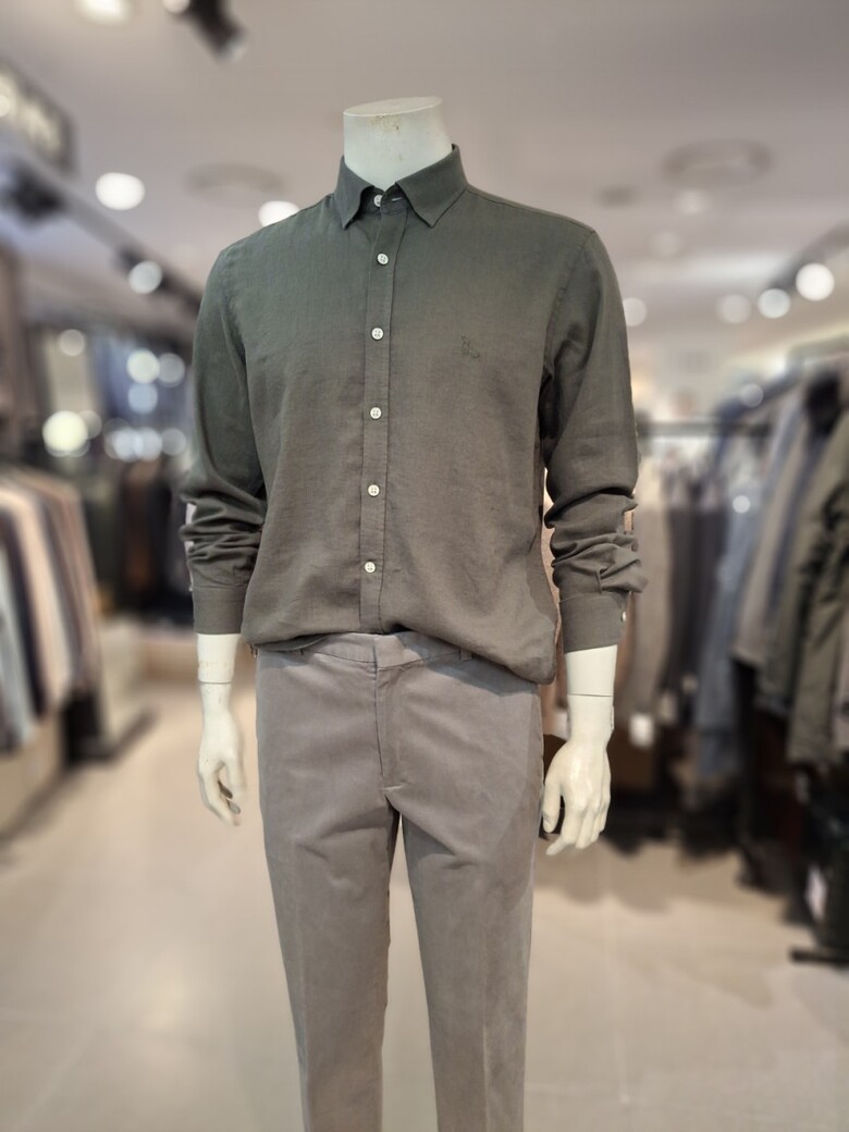 트레몰로 25SS 신상 워싱 쿨린넨혼방 솔리드 캐주얼 셔츠 카키 TRHNL5S1171