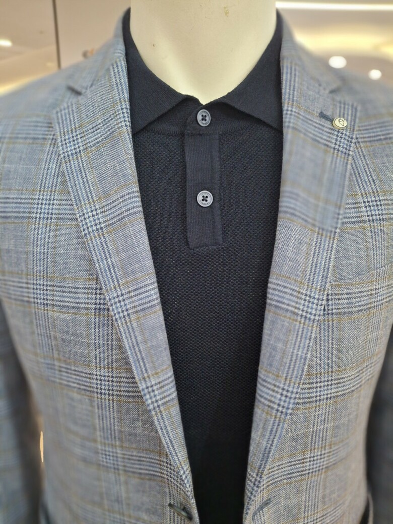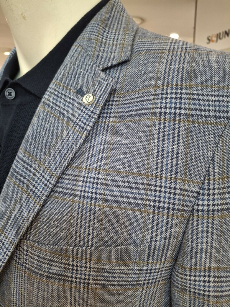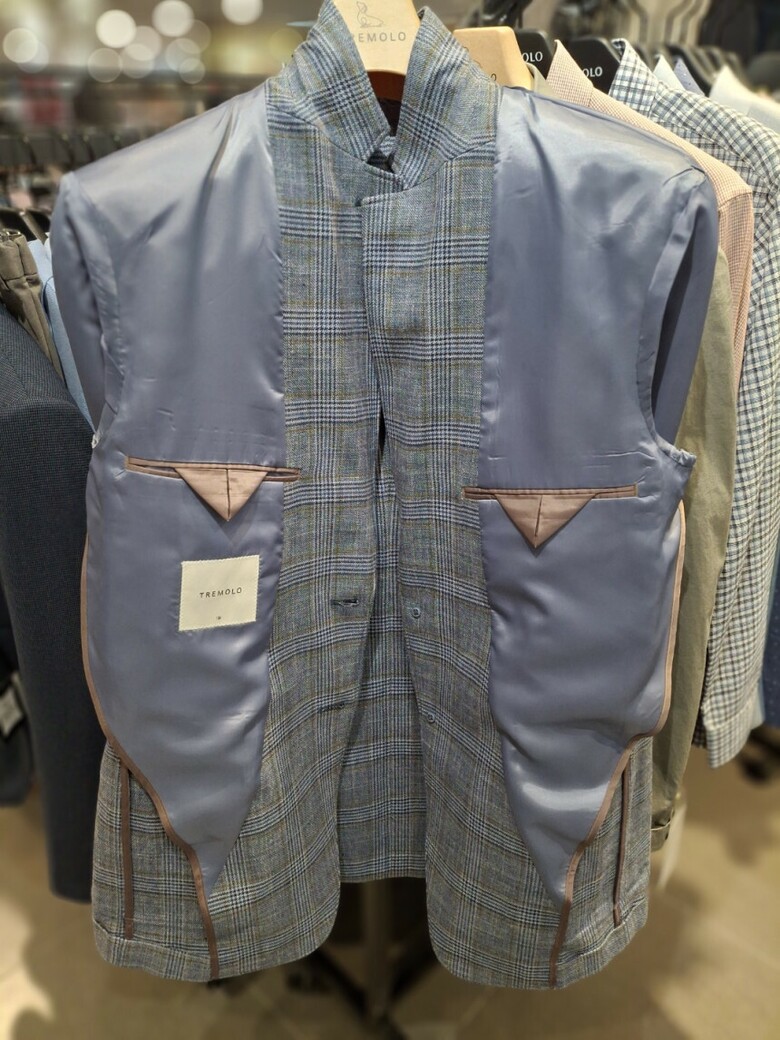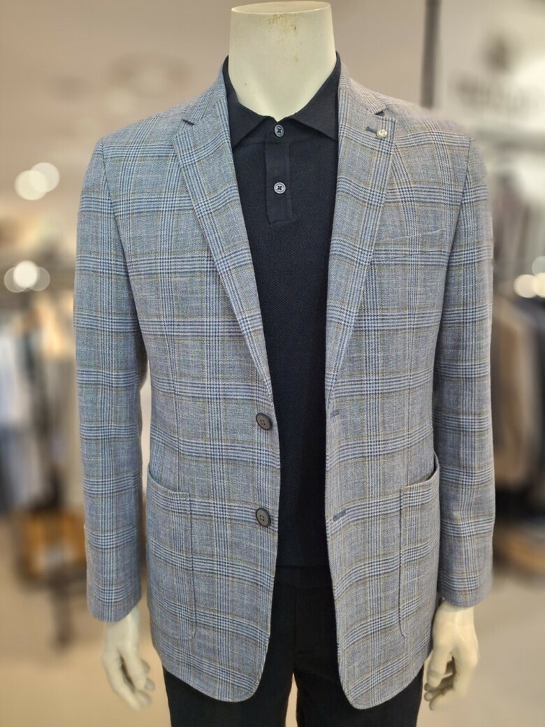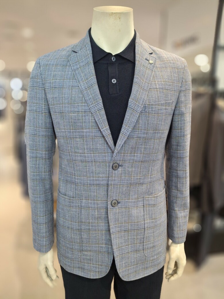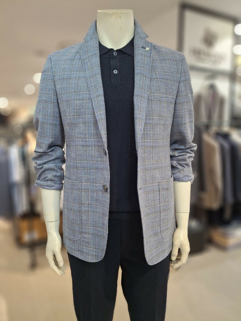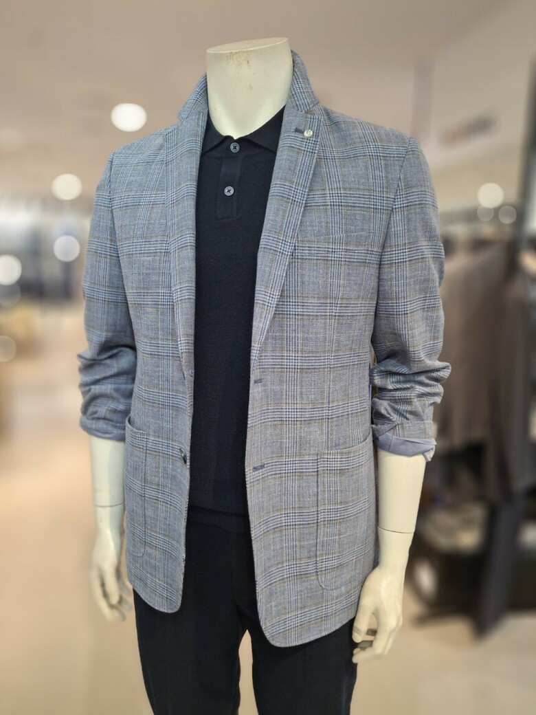 주)세정 트레몰로 25SS 신상 면 혼방 스트레치 린넨체크 자켓 블루 TRHFU5S1231