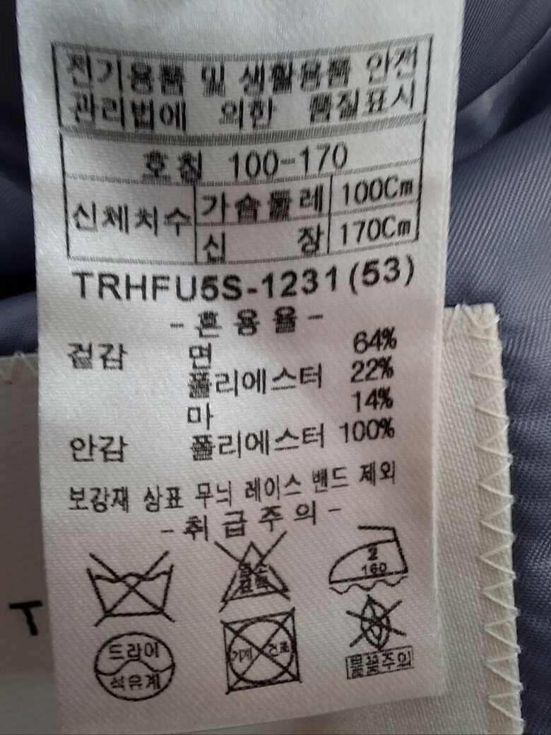 | 1. 제품 소재 (섬유의 조성 또는 혼용률을 백분율로 표시, 기능성인 경우 성적서 또는 허가서) | 린넨 / 겉감:면 64%, 폴리에스테르 22%, 마 14% / 안감:폴리에스테르 |