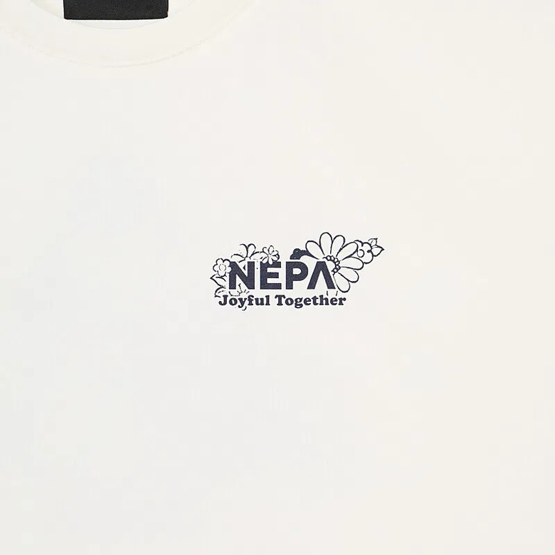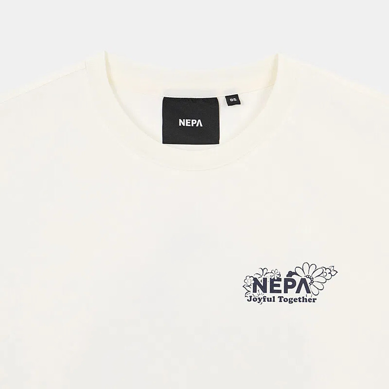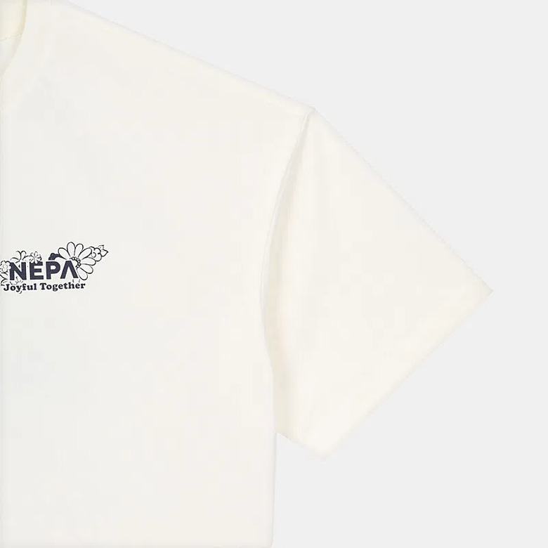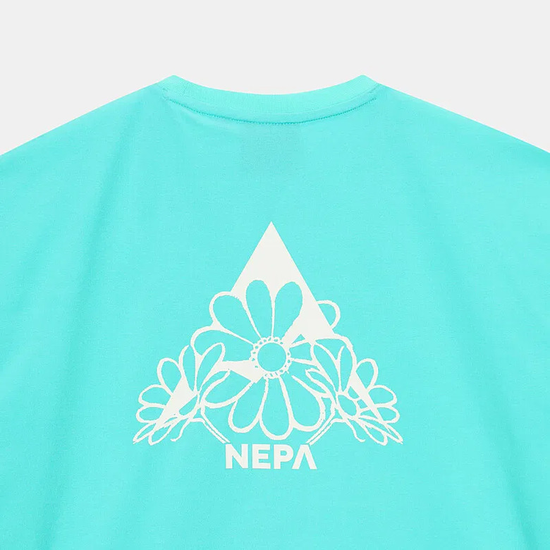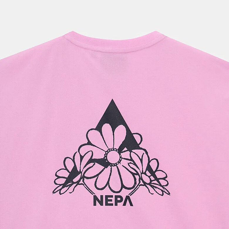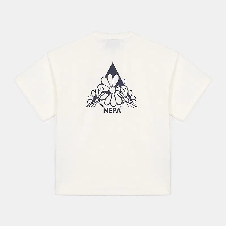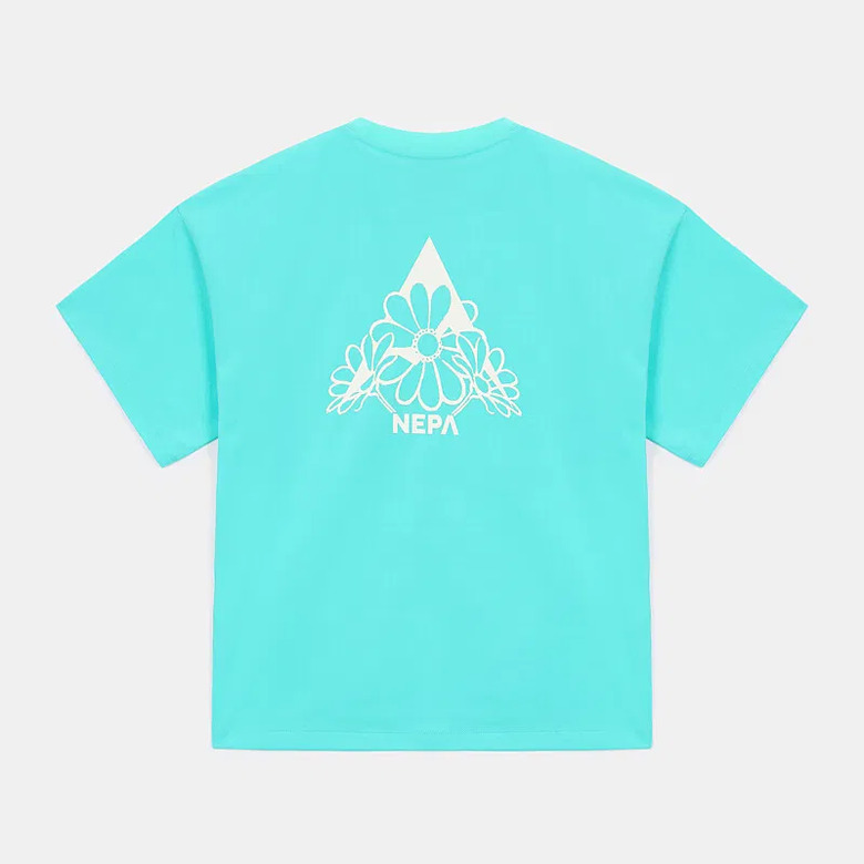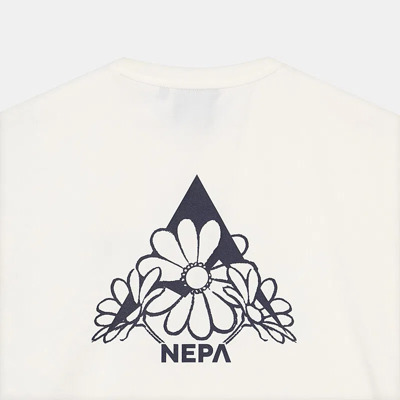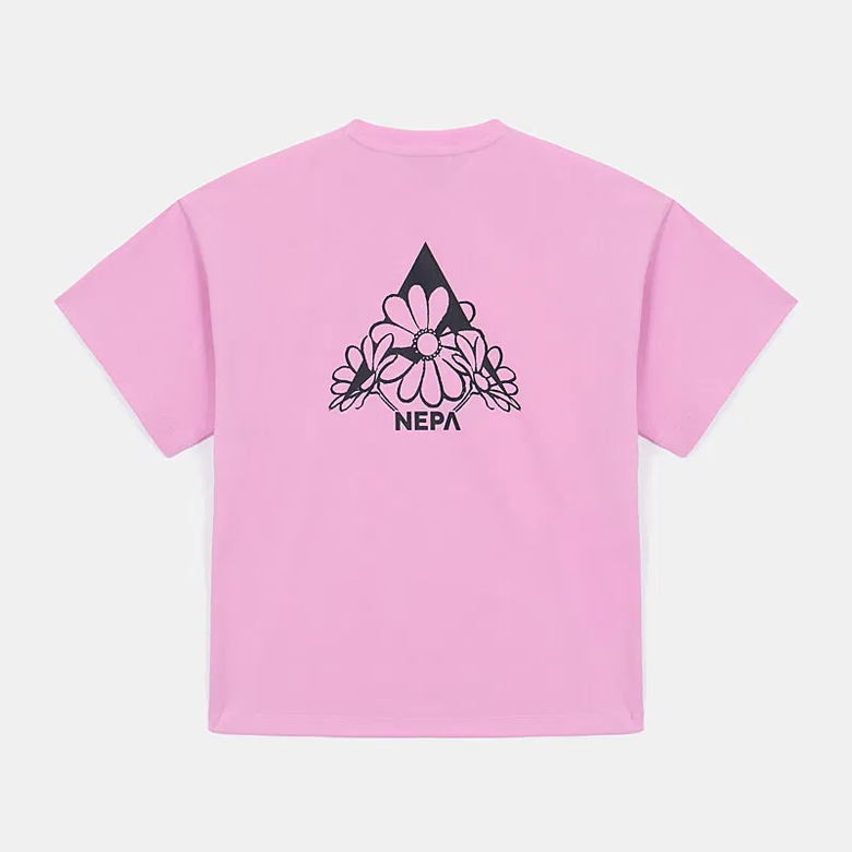 - 꽃과 네파의 PEAK A 로고를 그래픽화한 여성 전용의 크롭 반팔 티셔츠