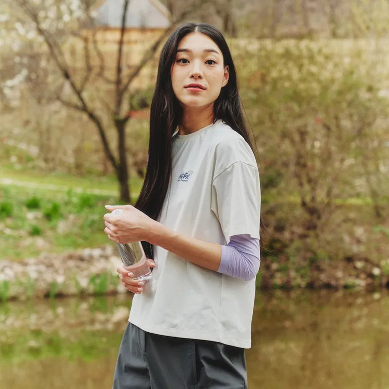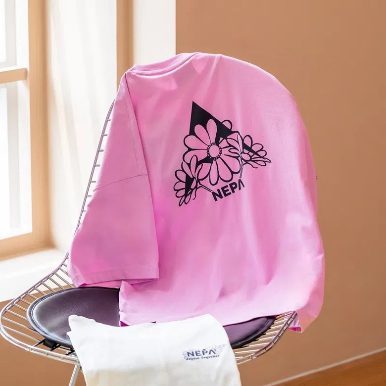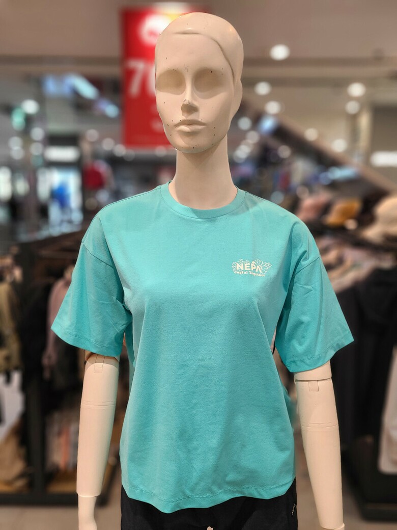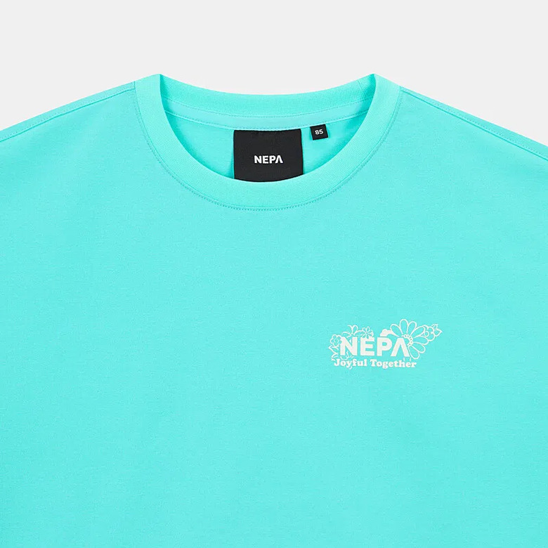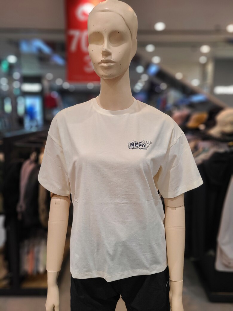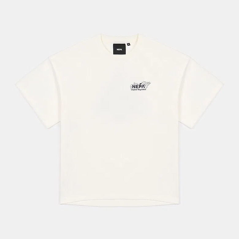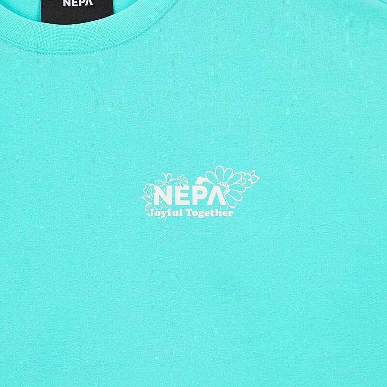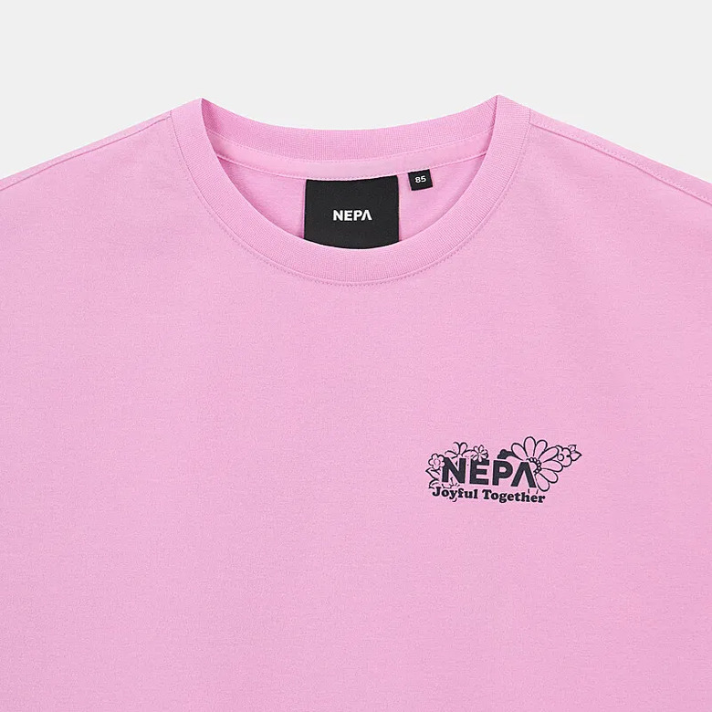- 꽃과 네파의 PEAK A 로고를 그래픽화한 여성 전용의 크롭 반팔 티셔츠