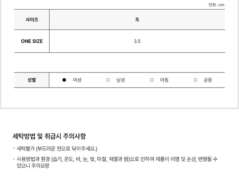 • 처음 배송된 상품상태와 다를 경우(세탁/착용 후 외출하신 경우) 반품이 불가합니다.