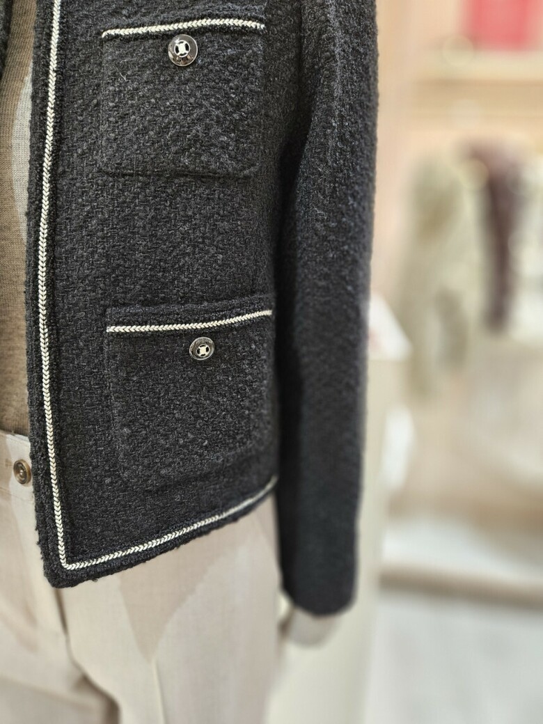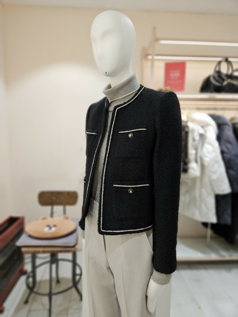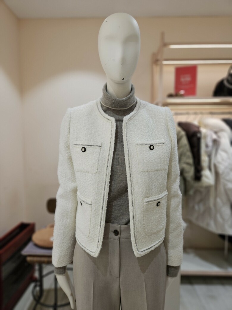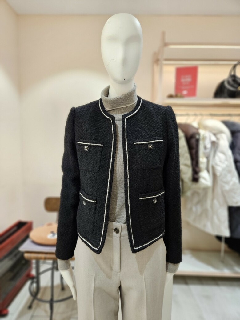 울 트위드 라운드넥 오픈 재킷 GPAM0JK931
