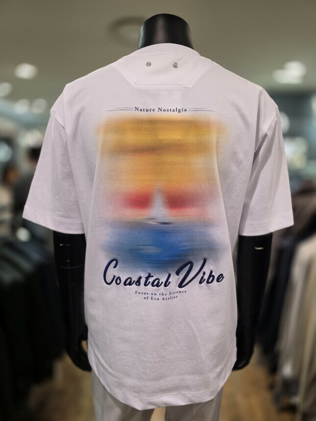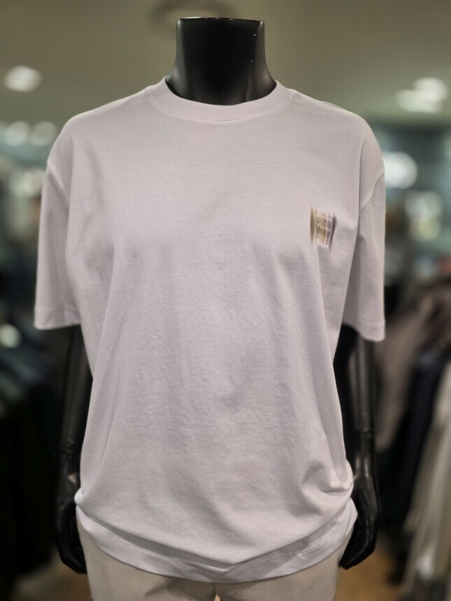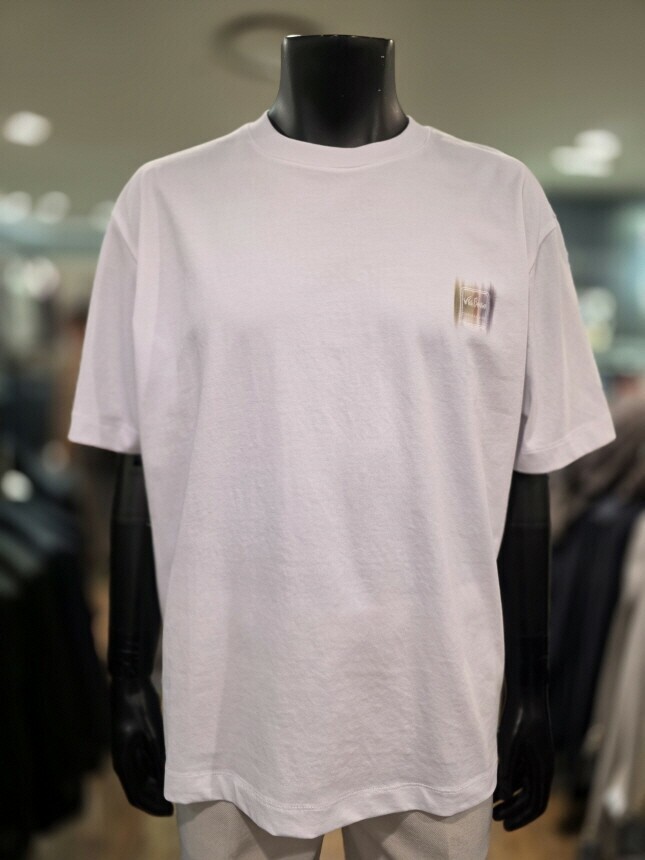 [바쏘옴므] Z2KR19A S/S 화이트 백프린팅 세미오버핏 반소매 티셔츠