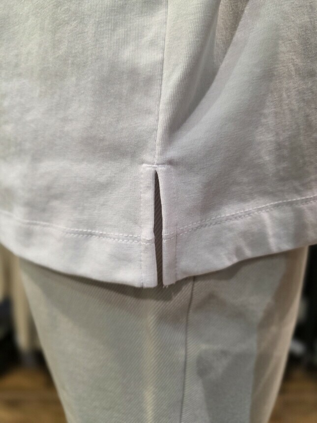 백 프린팅과 밑단 옆트임 디테일로