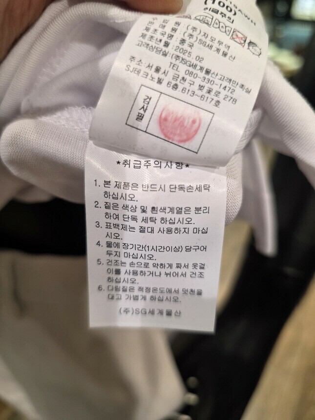 | 6. 세탁방법 및 취급시 주의사항 | 단독 물세탁 |
