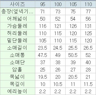 | 3. 치수 | 95,100,105,110 |