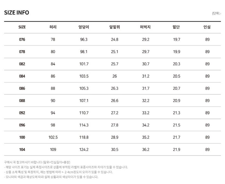 | 6. 세탁방법 및 취급시 주의사항 | 케어라벨참조 |