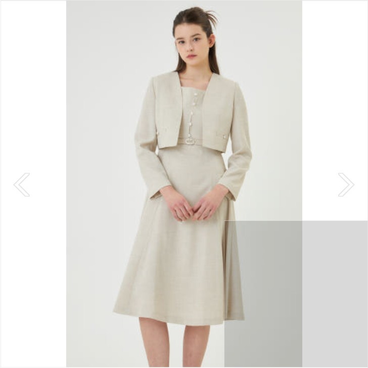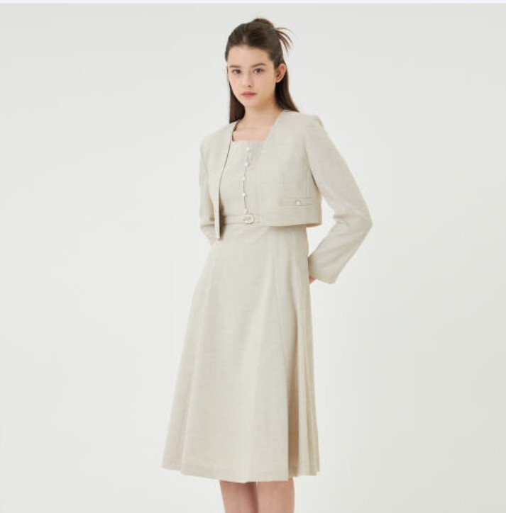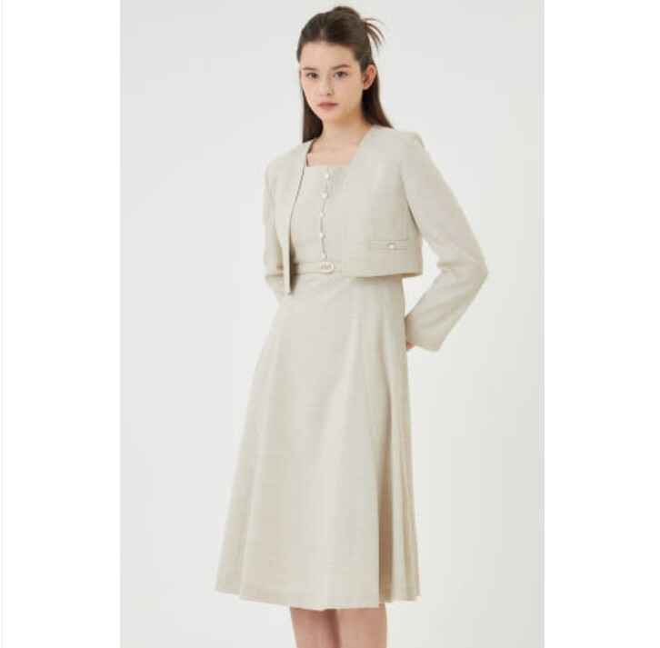 우아한 무드의 자켓 레이어드 원피스 세트입니다.