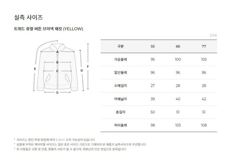 겉감 면 60%, 아크릴 21%, 폴리에스터 11%, 모 3%, 폴리우레탄 2%, 안감 폴리에스터 100%