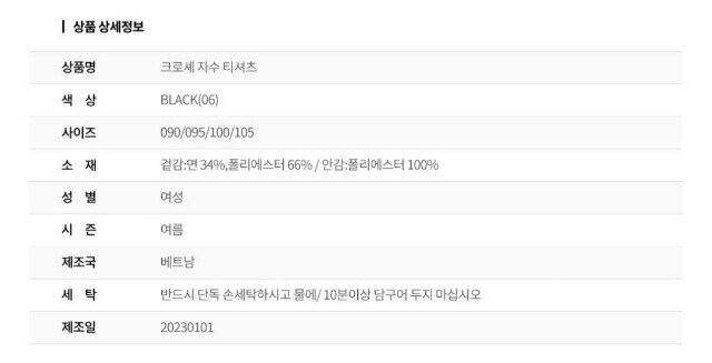 | 6. 세탁방법 및 취급시 주의사항 | 상품상세참조 |